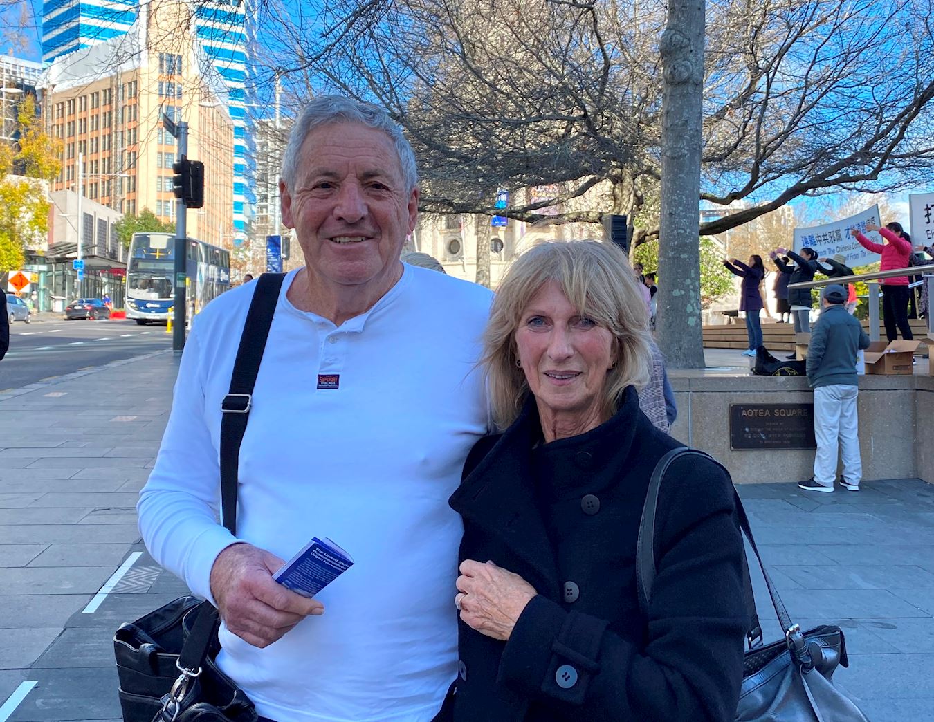 马克(Michael )和谢里尔(Sherrill)路过活动现场。马克从事家具生意,曾经在一家澳洲报社工作,负责培训新移民和失业人员。马克对法轮功学员说:“今天的活动非常好,我非常相信和支持你们。中国存在太多的不公正,尤其和新西兰比。”