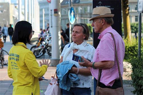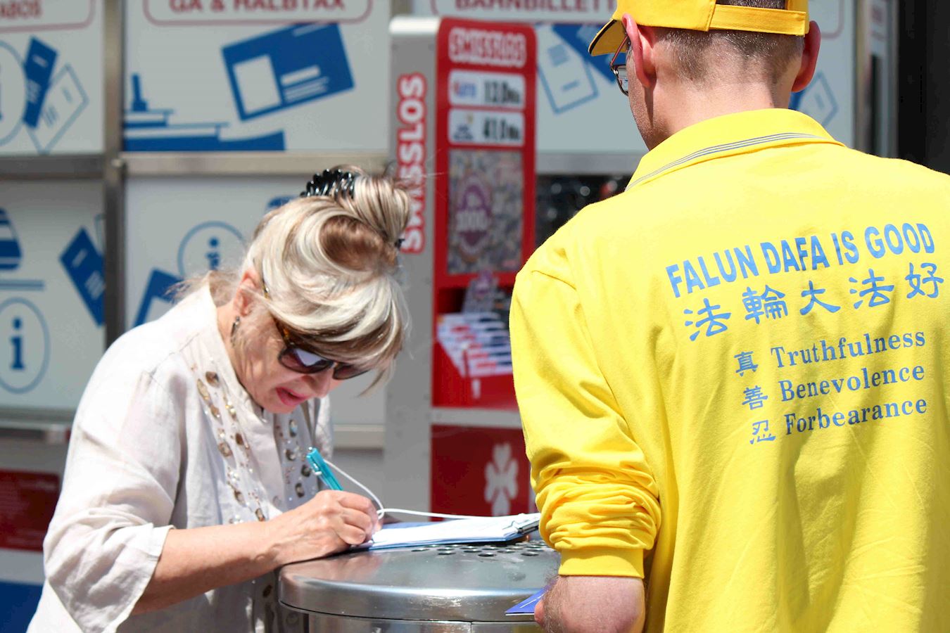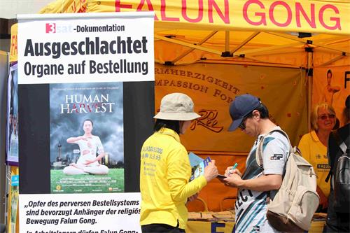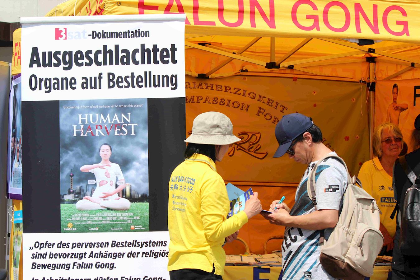 一直以来,法轮功学员都会定期在旅游胜地卢塞恩举办信息日活动,不仅向来此观光的中国游客展示法轮功的美好,也让当地的民众更多的了解在中国发生的对法轮功学员的血腥迫害。当迈耶女士(Beate Meier)再次看到法轮功学员的信息摊位后,她当即签名,并谈道:“两年前我听说了(中共)对法轮功的迫害,(这场迫害)持续太久了……那是两年前的一个阳光明媚的日子,我巧遇(信息日活动),有人(法轮功学员)向我讲解中共迫害法轮功的真相。我当时是如此的惊讶,目瞪口呆,居然会有(中共活摘器官)这样的事情发生,我们的媒体可不常报道这样的讯息,我当即决定签名支持(法轮功学员)。”从此她每年都会签名支持法轮功学员。
