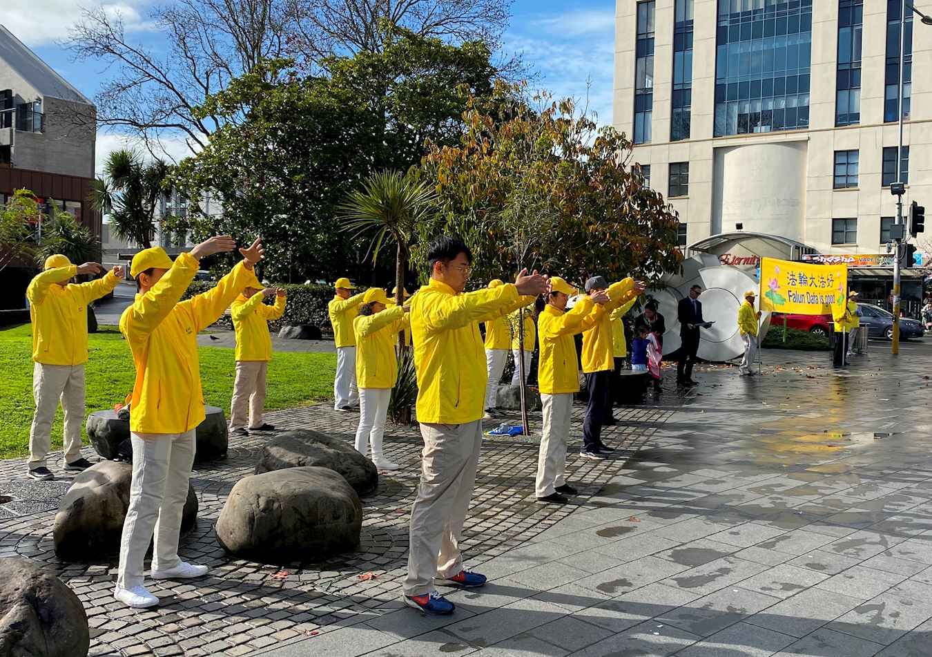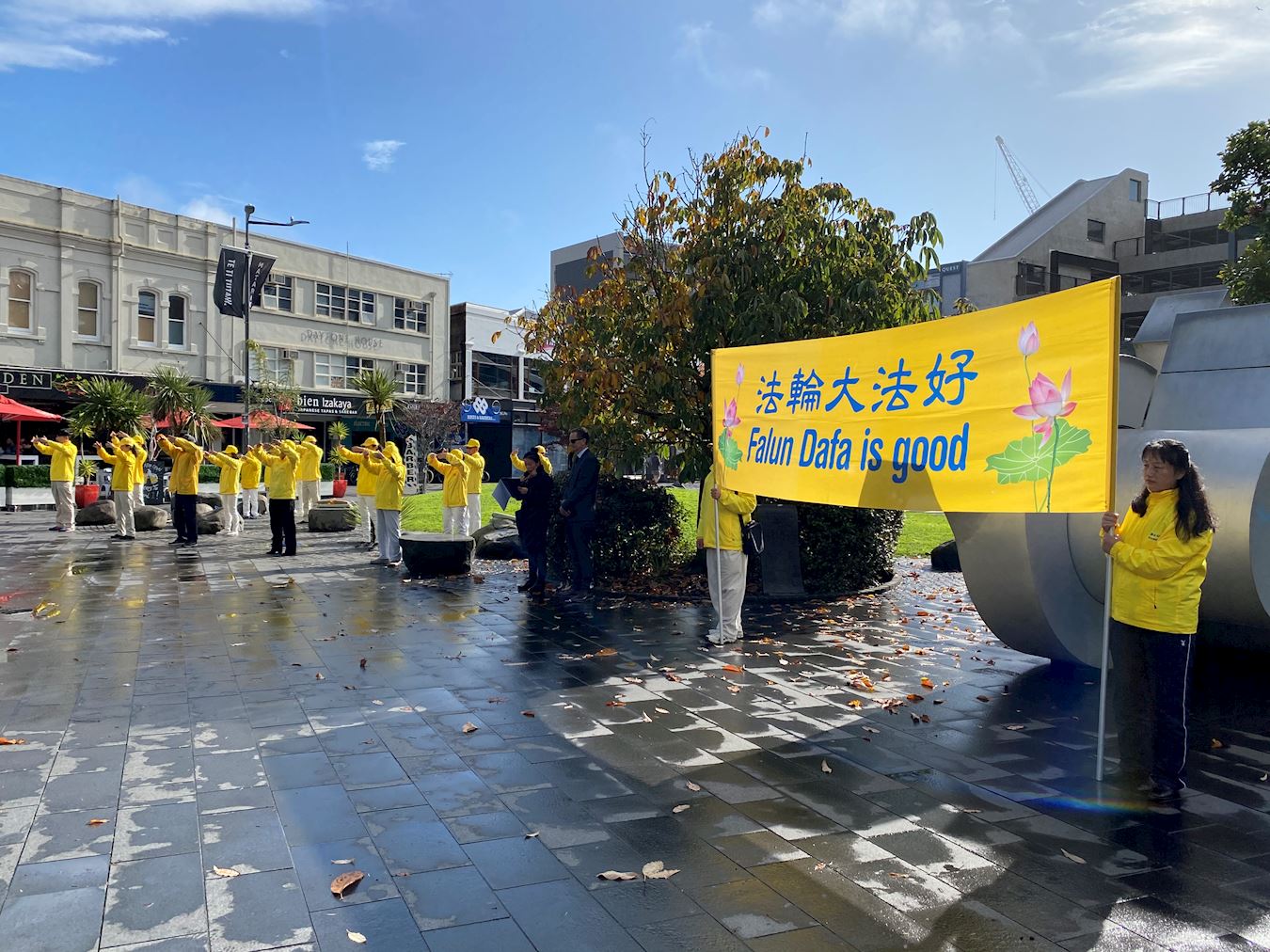 ![]() 图1~3:新西兰奥克兰法轮功学员在新市场商业中心炼功、讲真相 |