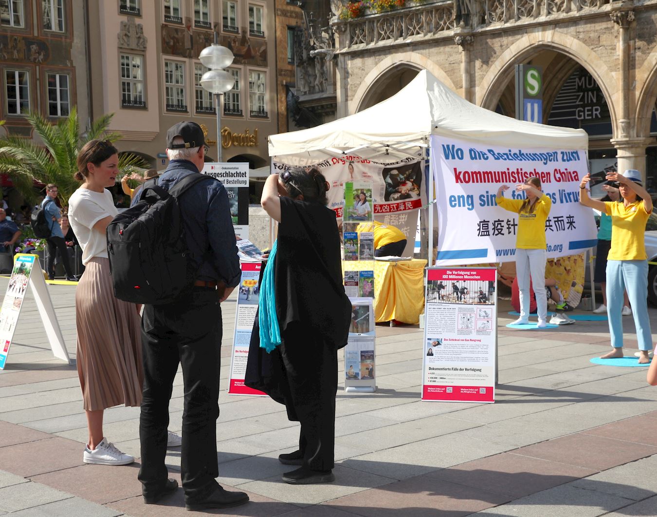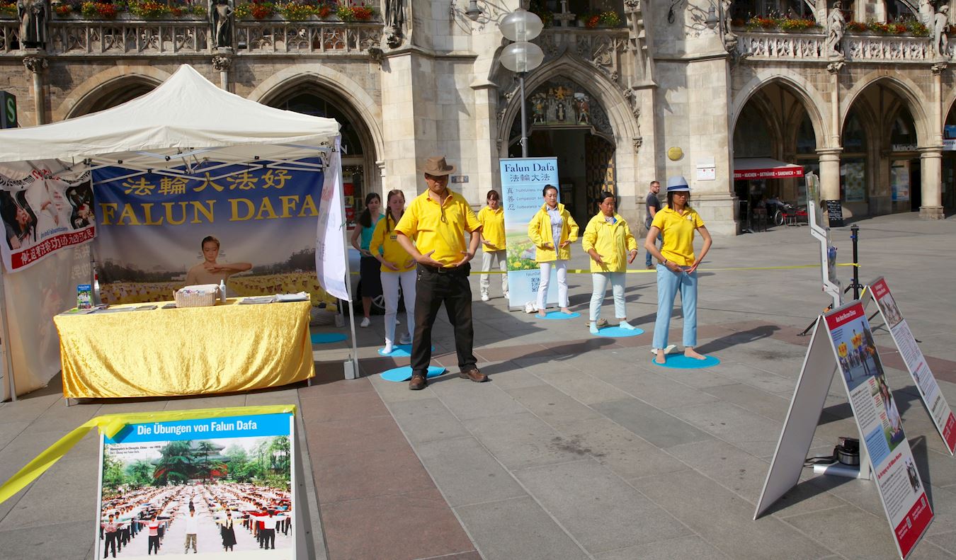 ![]() 图1:法轮功学员在德国慕尼黑玛琳广场(Marienplatz)举办信息日活动。 |