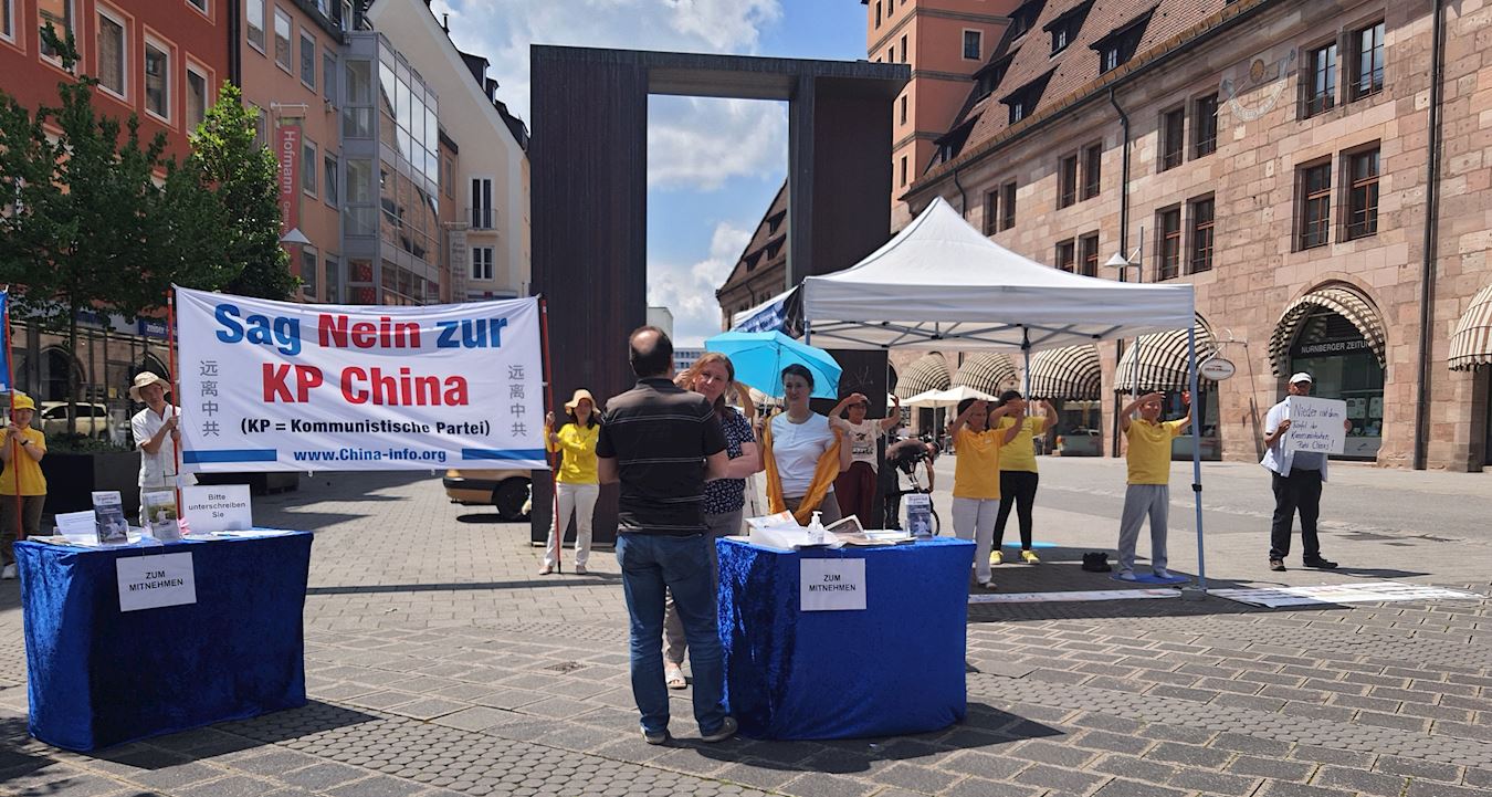 ![]() 图1:法轮功学员在纽伦堡举办信息日活动。 |