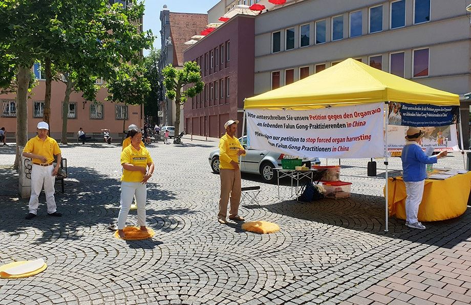 法轮功学员在奥格斯堡市中心的莫里茨广场(Moritzplatz)举办活动。其中一名德国学员表示,他感觉到,经过中共病毒(武汉肺炎)这场大瘟疫,德国民众对有关中国的情况很关注。人们意识到以前中国的真实情况被中共谎言遮掩,现在他们很想了解有关中国的真实信息。