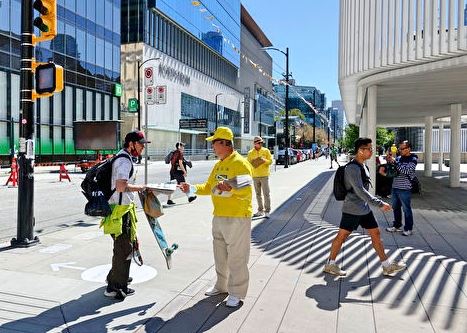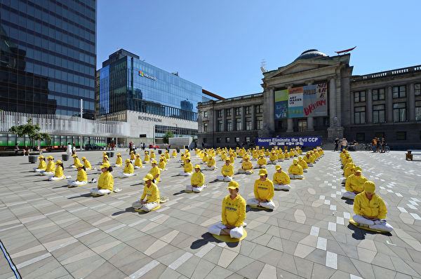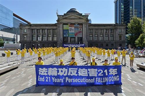 ![]() 图1~3:二零二零年七月十二日,温哥华法轮功学员在市中心艺术馆前广场,举办大型炼功,纪念法轮功和平反迫害二十一周年。 |