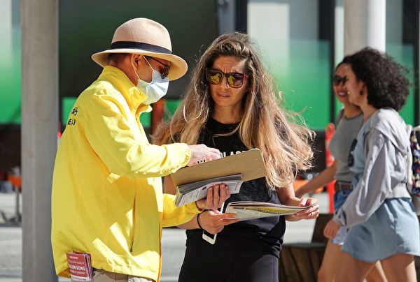 ![]() 图7:托尼(Tony)说:“法轮功学员信奉真善忍,这是一件非常好的事情,今天看到他们在这里办活动,我非常高兴。” |