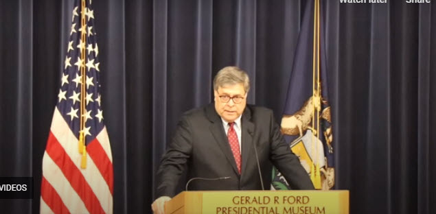 ![]() 美国司法部长威廉·巴尔七月十六日在密西根州杰拉尔德·福特博物馆演讲 |