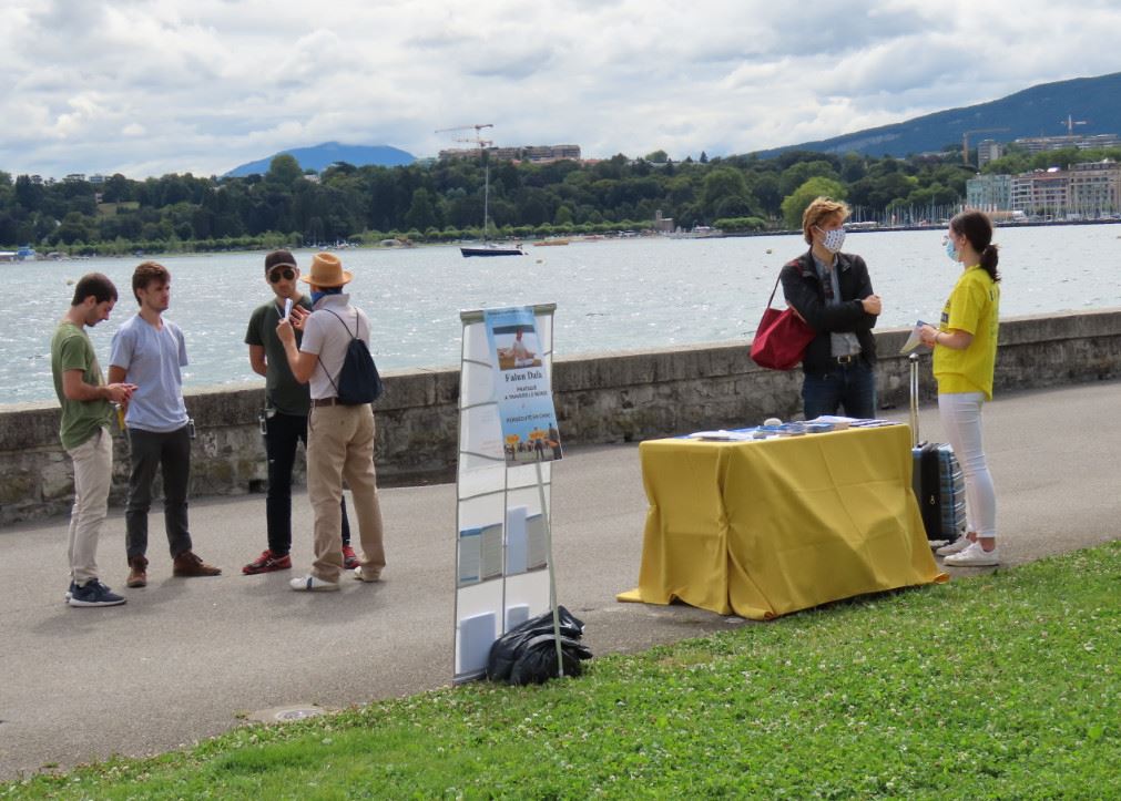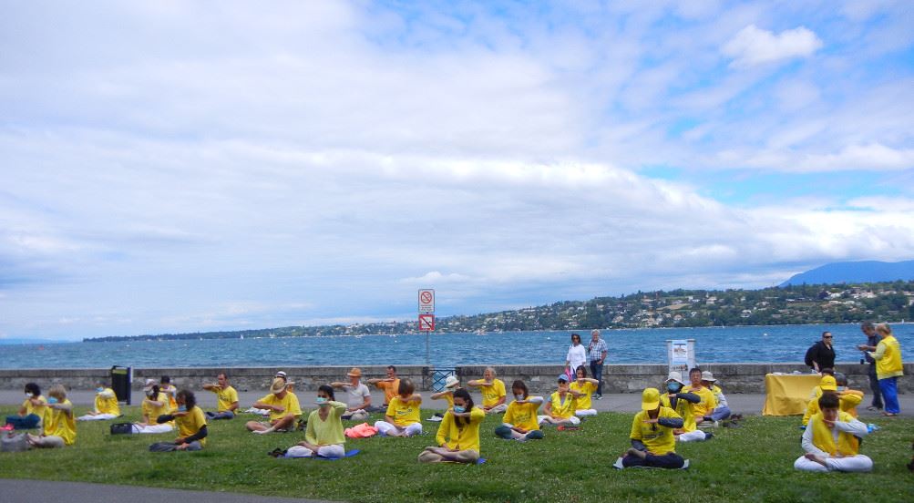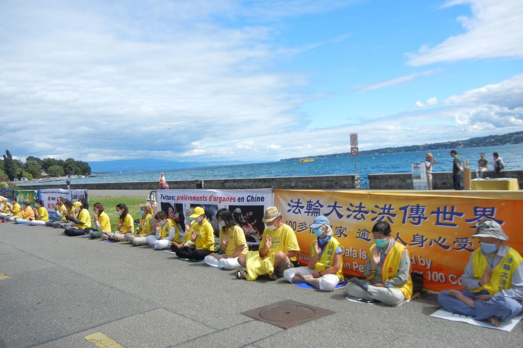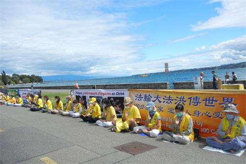 ![]() 图1~2:二零二零年七月十七日,瑞士法语区的部份法轮功学员和邻近地区的部份法国法轮功学员,于二零二零年七月十七日在联合国人权委员会门前的日内瓦湖畔和平请愿,呼吁联合国制止中共迫害法轮功。 |