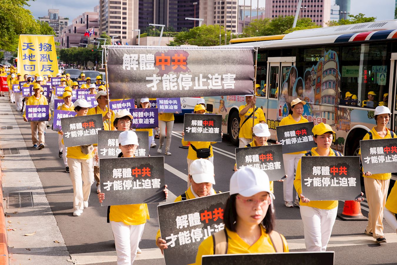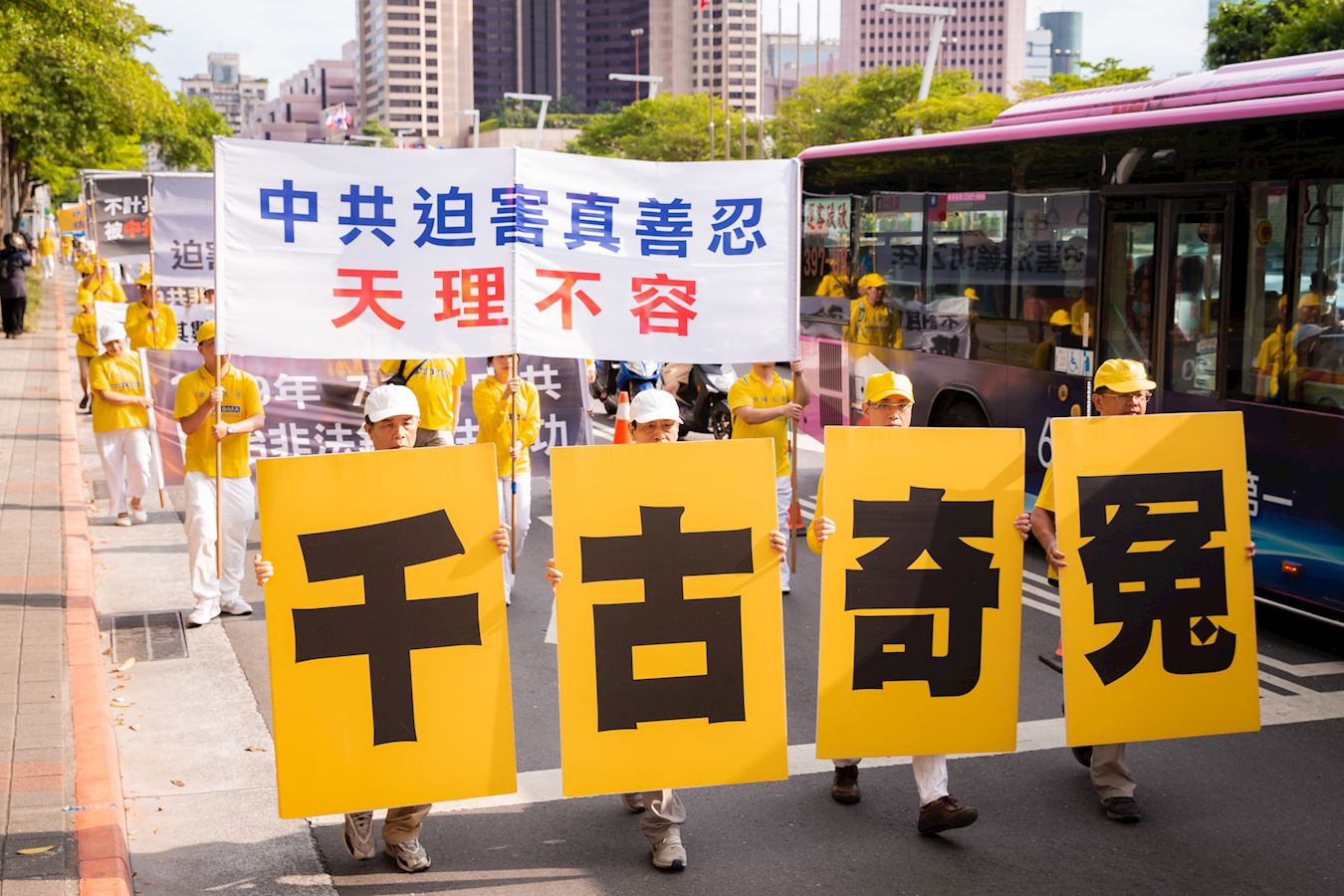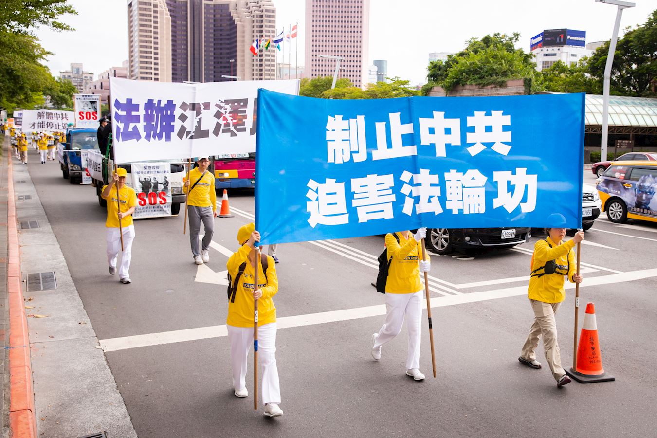![]() 图8~14:二零二零年七月十八日台北千名法轮功学员参加“反迫害二十一周年——天灭中共 结束迫害”游行活动。 |