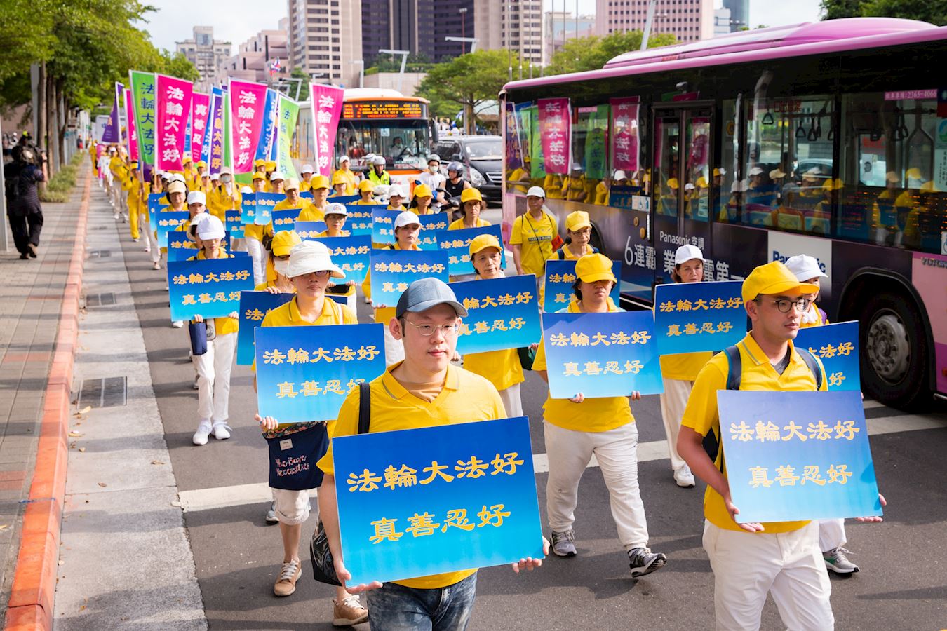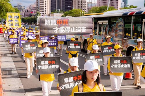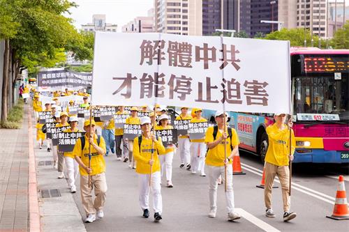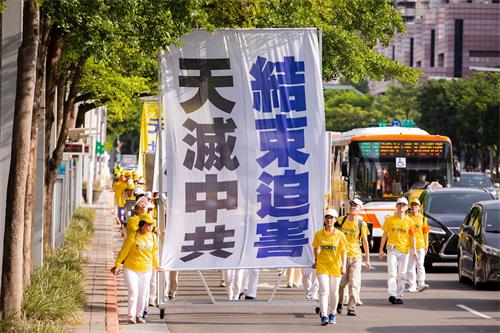 台湾法轮大法学会表示,因疫情关系,配合政府之户外活动人数管理规定,仅申请一千名法轮功学员参与游行。游行队伍由天国乐团盛大恢弘的演奏乐声引领“大法洪传”、“千古奇冤”及“结束迫害”三大方阵展开,从市民广场出发,行经市府路、松高、松仁、松寿路等热闹商业区。