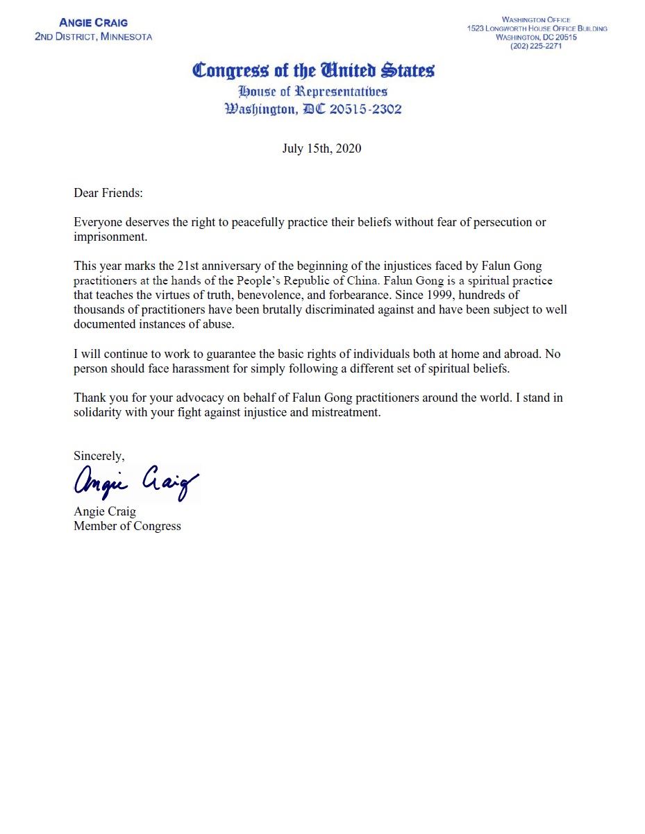 ![]() 图1:国会众议员安吉·克雷格(Angie Craig)的支持信。 |