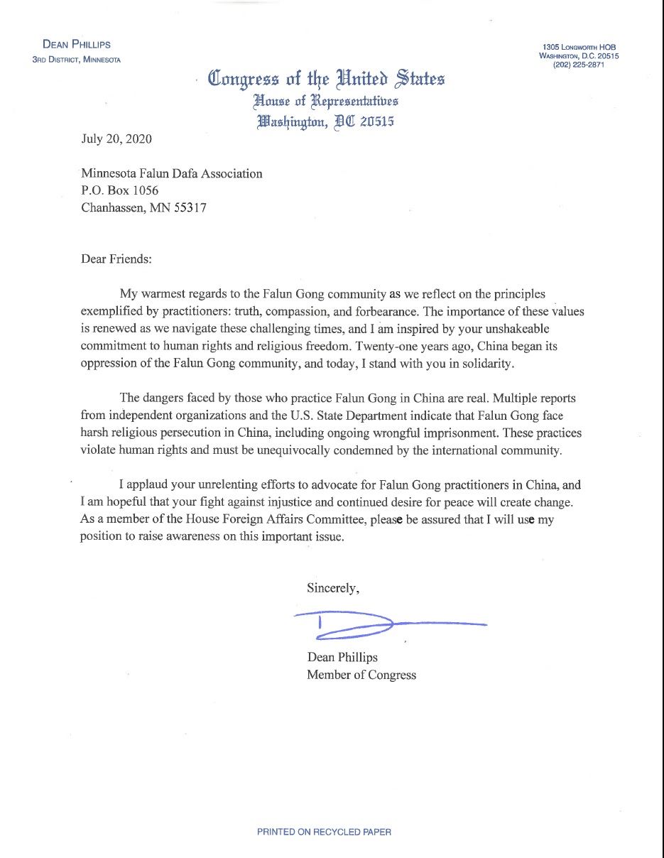 ![]() 图2:国会众议员迪恩·菲利普斯(Dean Phillips)的支持信 |