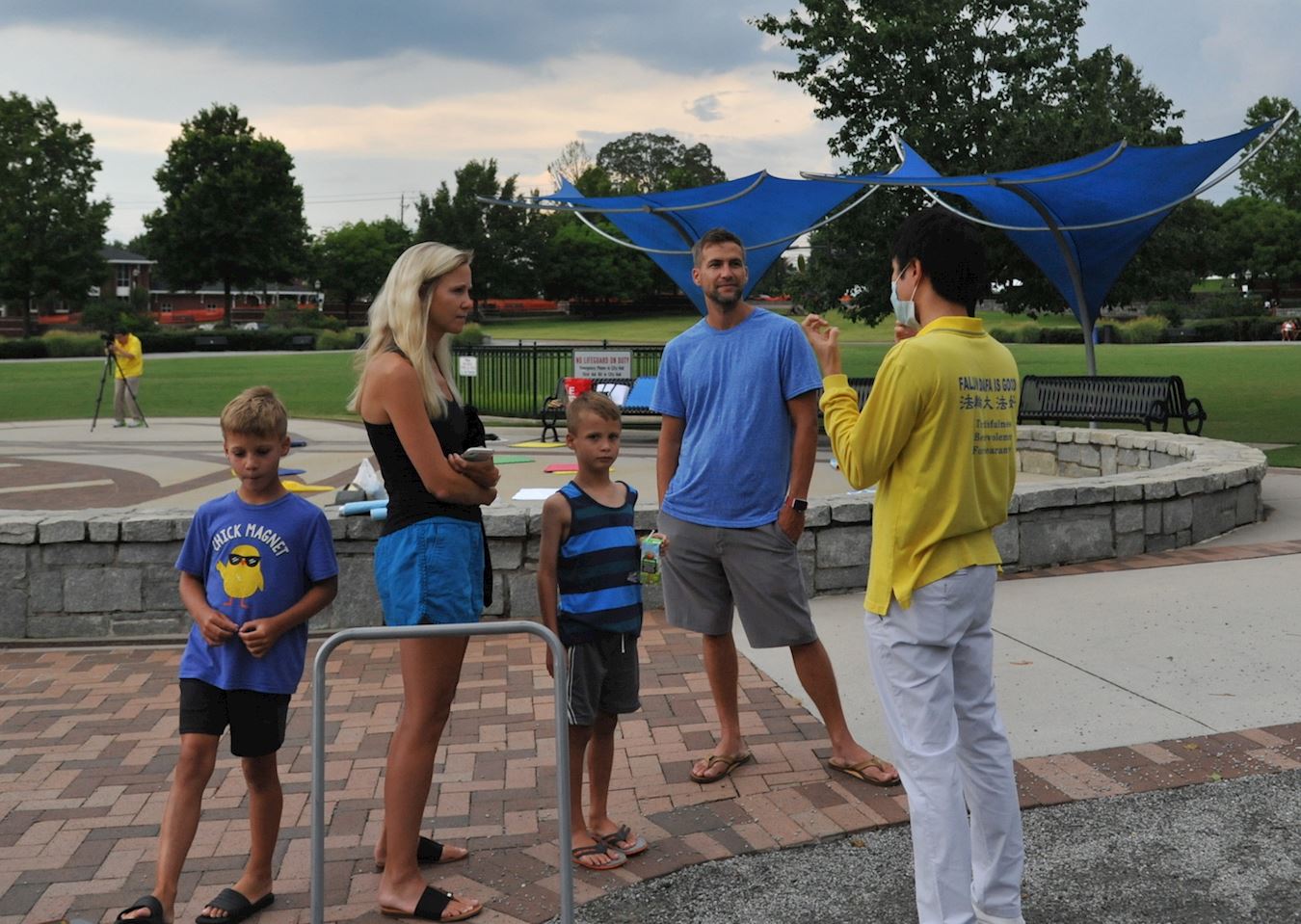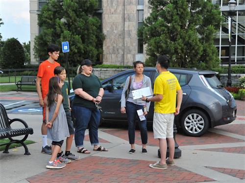 ![]() 图2~5:美国亚特兰大法轮功学员和过往民众交谈,并征集签名 |