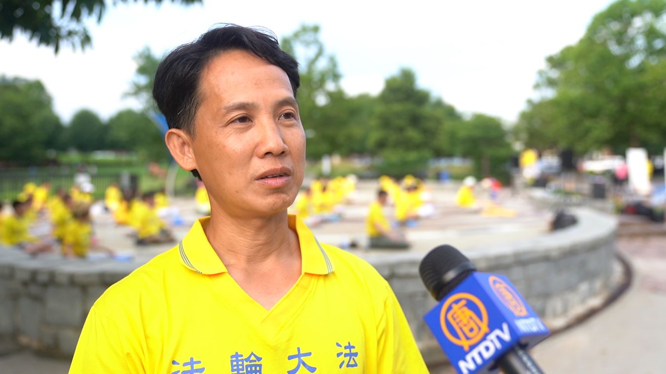 二零一七年得法的亚特兰大学员奎浩(Qui Ho)说:“我家里人病了,当时四处寻医,所以有朋友向我们介绍法轮功。当时我八十六岁的母亲因为肝脏不好,还患有糖尿病和高血压,她在医院急诊室住了两个月,当时她几乎不能走路,在修炼了六个月后,我们全家人的病都好了。”