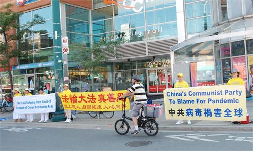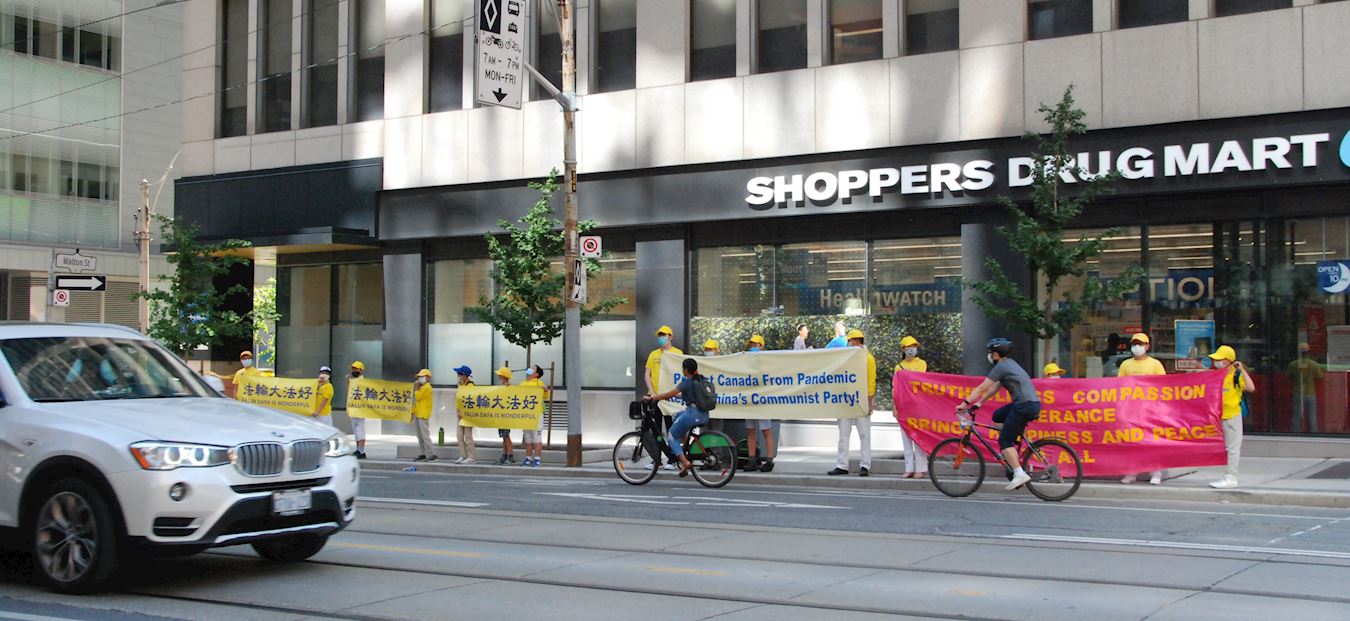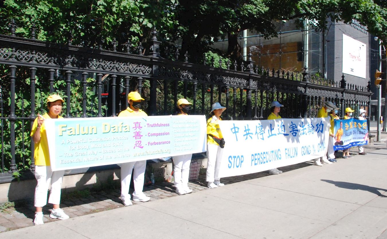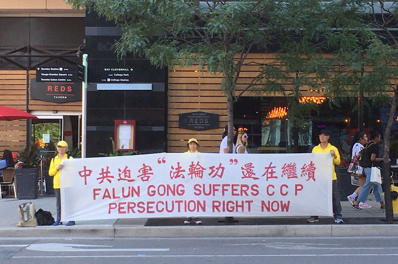 吴先生是一位很早就移民加拿大的香港人,他走到拉着大法真相横幅的学员跟前说:“我一直在看大.纪.元;的报纸,法轮功被迫害的情况我都知道。据我知道,在中共内部,其实很多高官和他们的家属在江泽民迫害法轮功之前,他们都是修炼法轮功的。我很久之前就已经知道法轮功了,在加拿大,也参加过法轮功学员的一些集会,以及游行活动。有一次大法弟子在多伦多大学放电影我也去看了。”