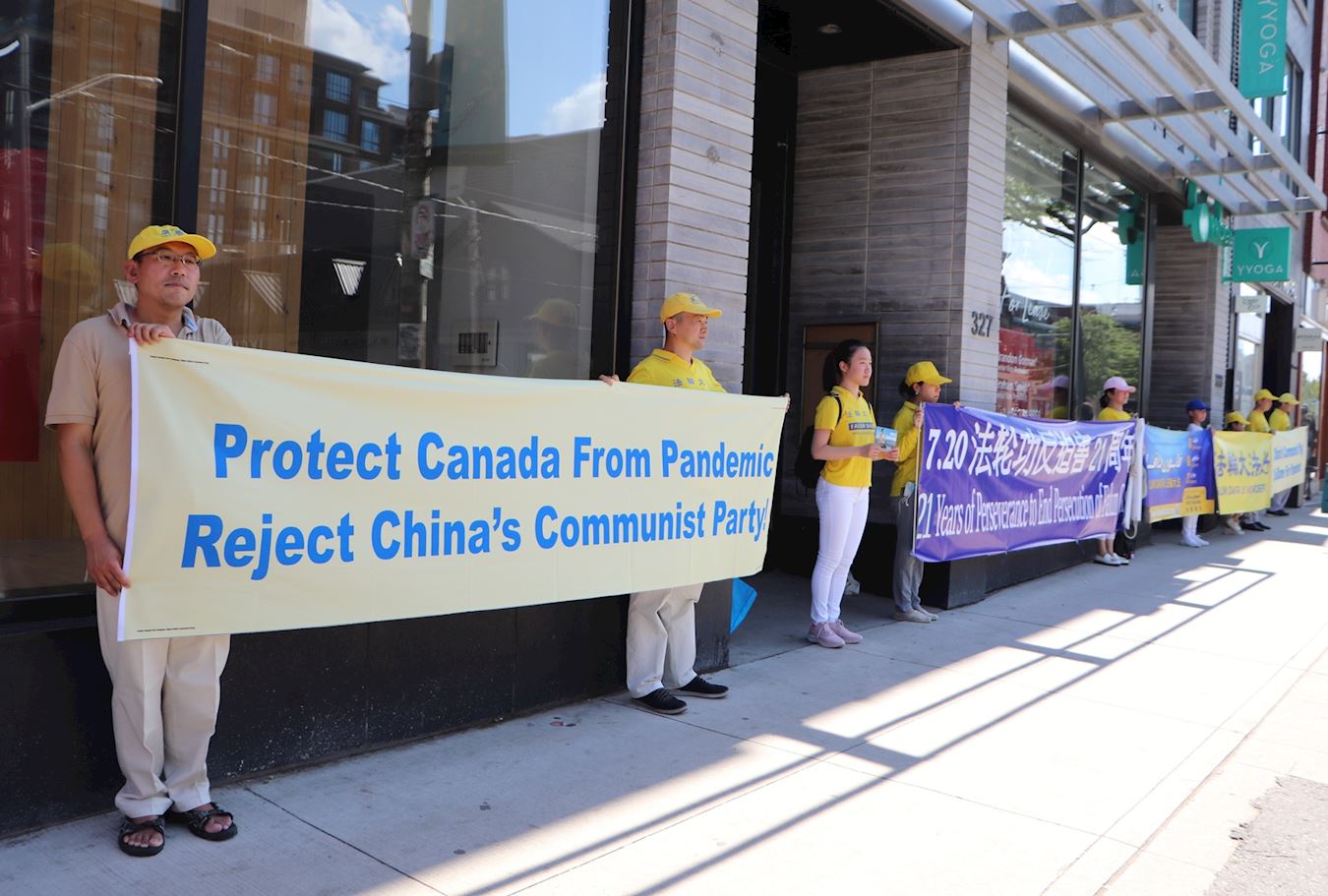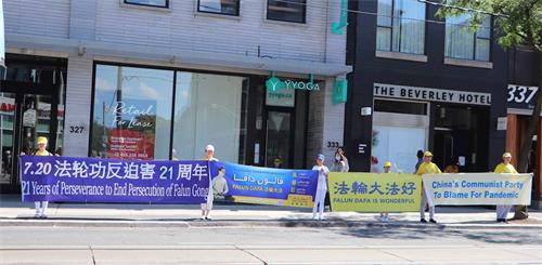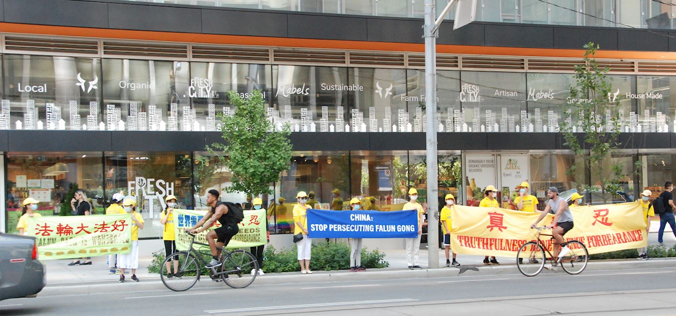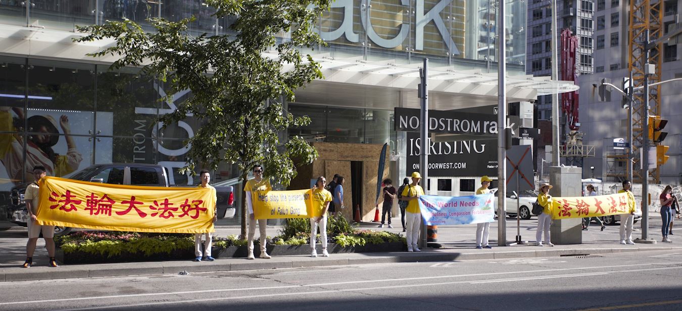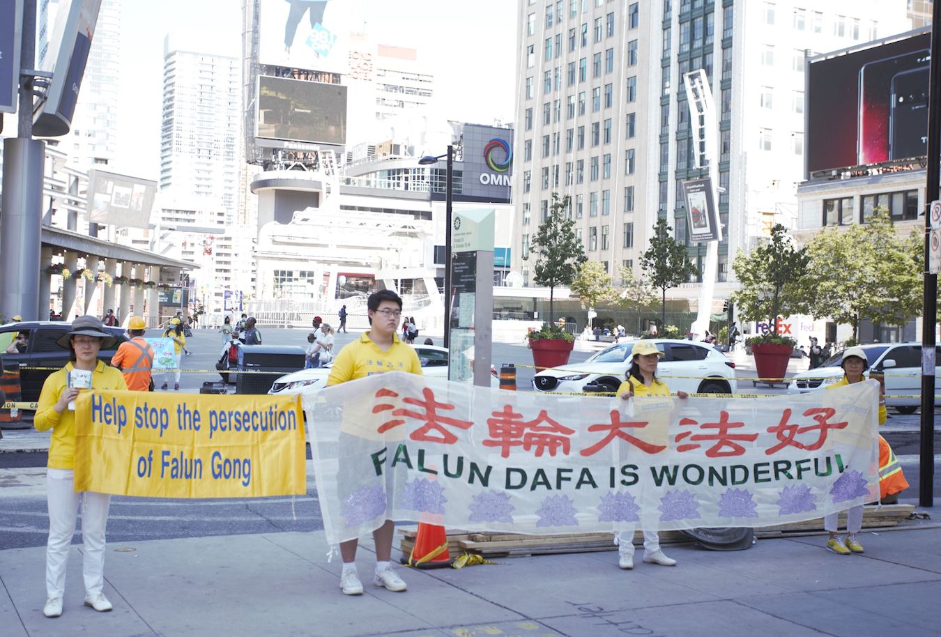 吴先生是一位很早就移民加拿大的香港人,他走到拉着大法真相横幅的学员跟前说:“我一直在看大.纪.元;的报纸,法轮功被迫害的情况我都知道。据我知道,在中共内部,其实很多高官和他们的家属在江泽民迫害法轮功之前,他们都是修炼法轮功的。我很久之前就已经知道法轮功了,在加拿大,也参加过法轮功学员的一些集会,以及游行活动。有一次大法弟子在多伦多大学放电影我也去看了。”