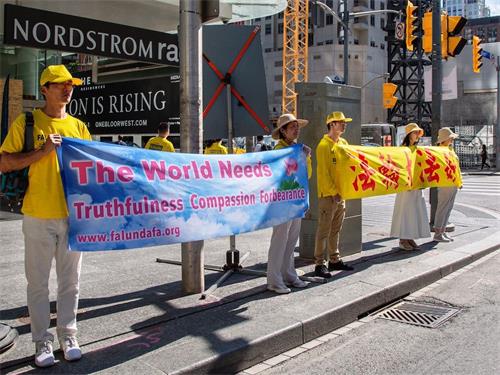 ![]() 图1~19:二零二零年七月十七日下午,大多伦多地区的法轮功学员在市中心、密西沙加市、士嘉堡区和万锦区繁忙的四十多个路口组成真相长城,给民众传递真相。 |