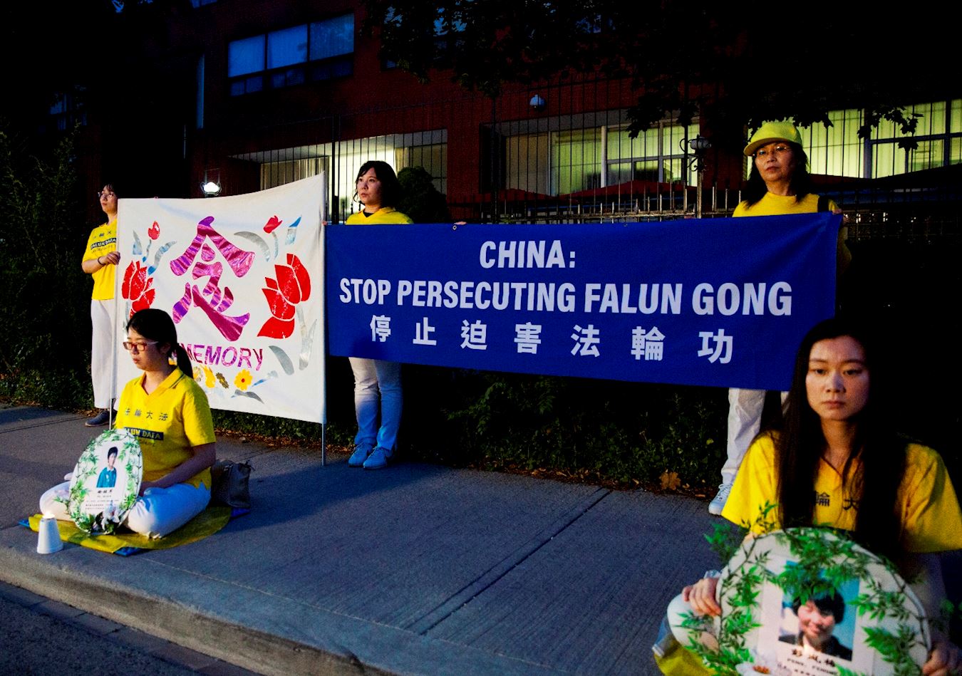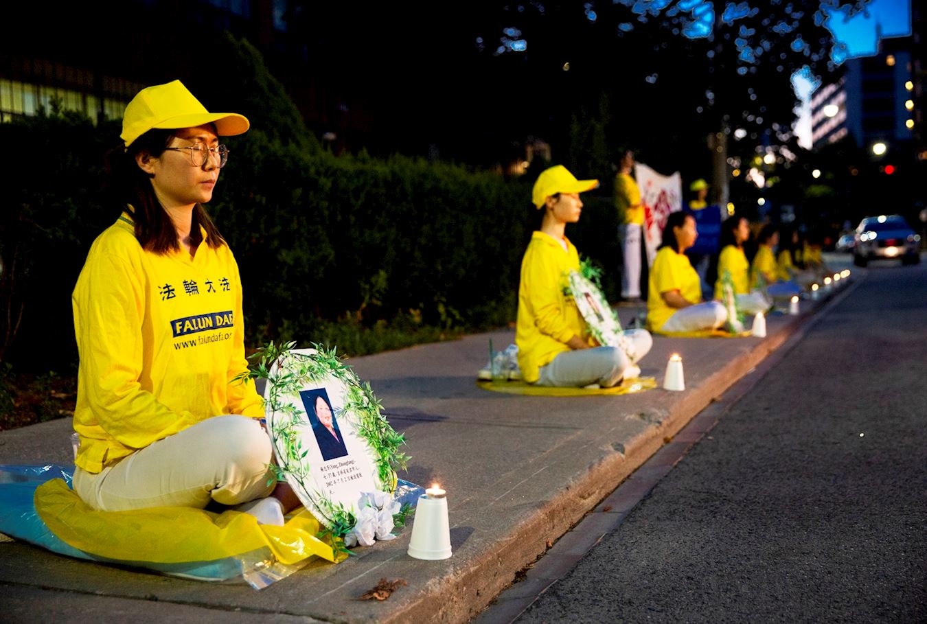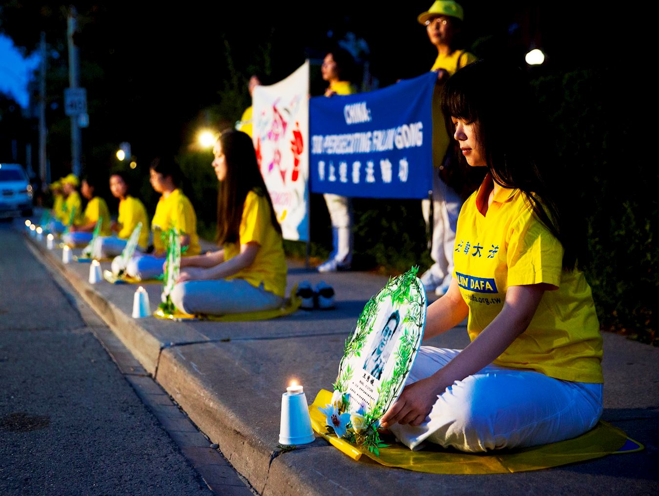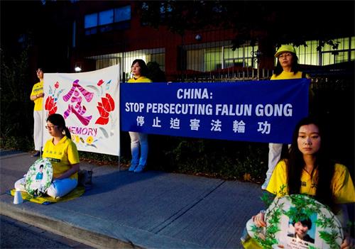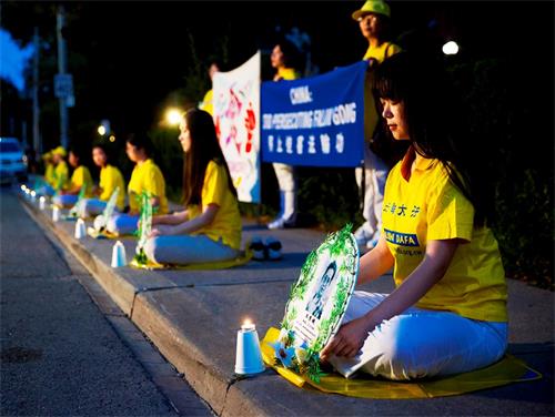 ![]() 图25~28:晚上8点至10点,法轮功学员在多伦多中领馆前举行了烛光悼念,悼念在中国被中共迫害致死的法轮功学员。 |