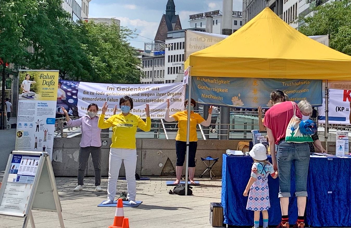 【明慧网二零二零年七月二十一日】二零二零年七月十八日,德国汉诺威与周边城市的法轮功学员在汉诺威市中心的恩斯特·奥古斯特广场(Ernst-August-Platz)举办活动,纪念法轮功学员反迫害二十一周年。他们向民众揭露在中国发生的对法轮功学员残酷迫害的事实,受到了民众的支持。