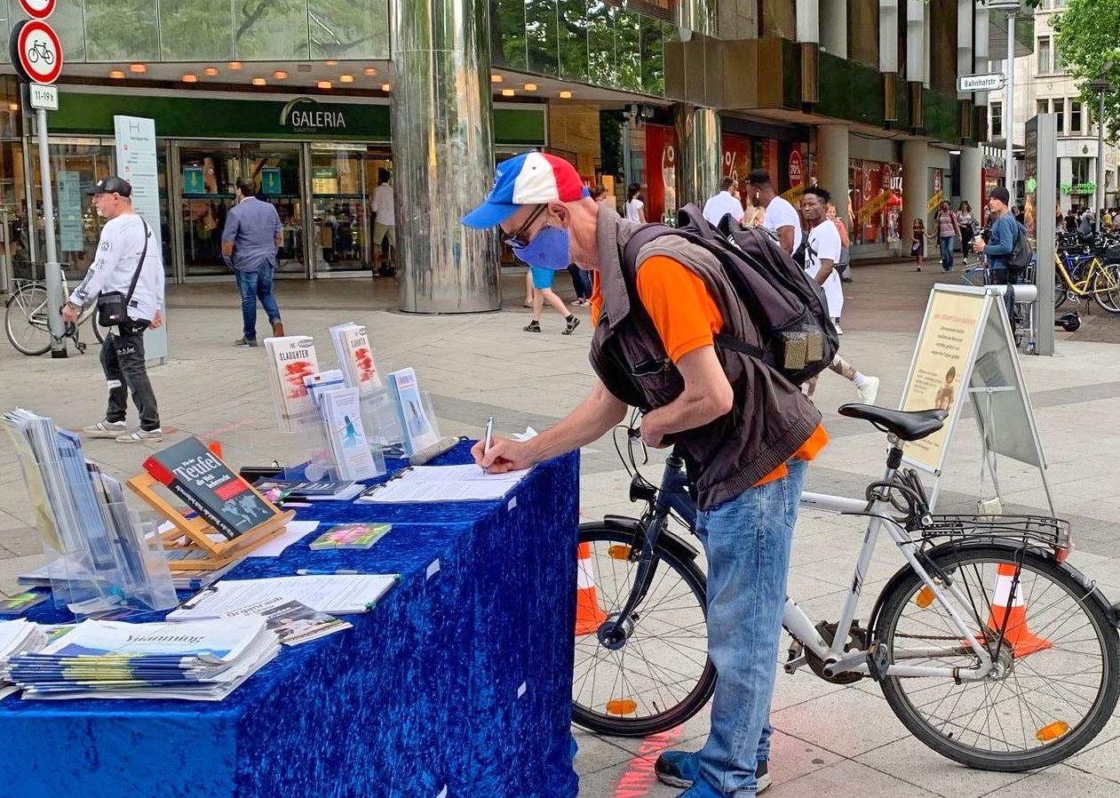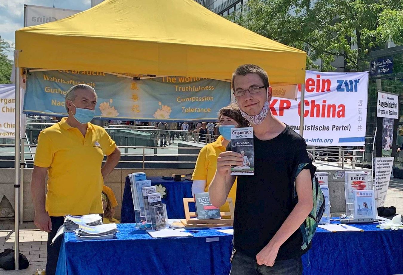 茨文-克瑞斯提安·克拉泽(Swan-Christian Klasen)来到法轮功学员的信息台签下反对中共活摘法轮功学员的请愿书。他曾经在电视上有过一些对法轮功学员被迫害的了解。他说:“为什么要迫害这些看上去很和平的人?仅仅就因为一个国家的领导人的独裁统治?他认为这个(法轮功)不好,这个要被铲除,然后就让他们(法轮功学员)消失?怎么可以这样呢?”他签名希望人们可以一起为结束迫害作些贡献。他说:“如果西方国家可以(对中共)再施加一点压力,也许能够(对停止这场迫害)起到一些作用。”他觉得德国政府不应该屈服于经济上的利益,他说:“德国政府应该坚持(对中共施加压力),而不应该说什么‘我们觉得这不好,但我们还需要十万个来自中国制造的某产品’。”此外,他表示:“真、善、忍的原则很好。这个功法看起来很平和,应该在西方国家得到更多的普及。”