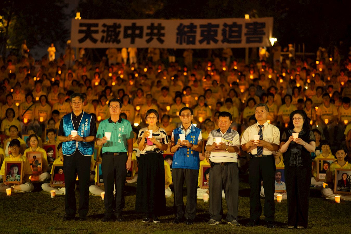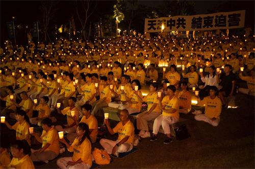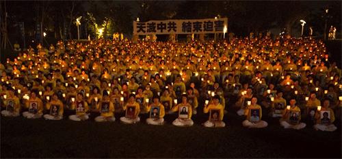 ![]() 图5:台湾桃园、新竹、苗栗等地的部份法轮功学员在桃园风禾公园举办“天灭中共,结束迫害”反迫害二十一周年烛光守夜活动。各界人士到场声援支持。 |