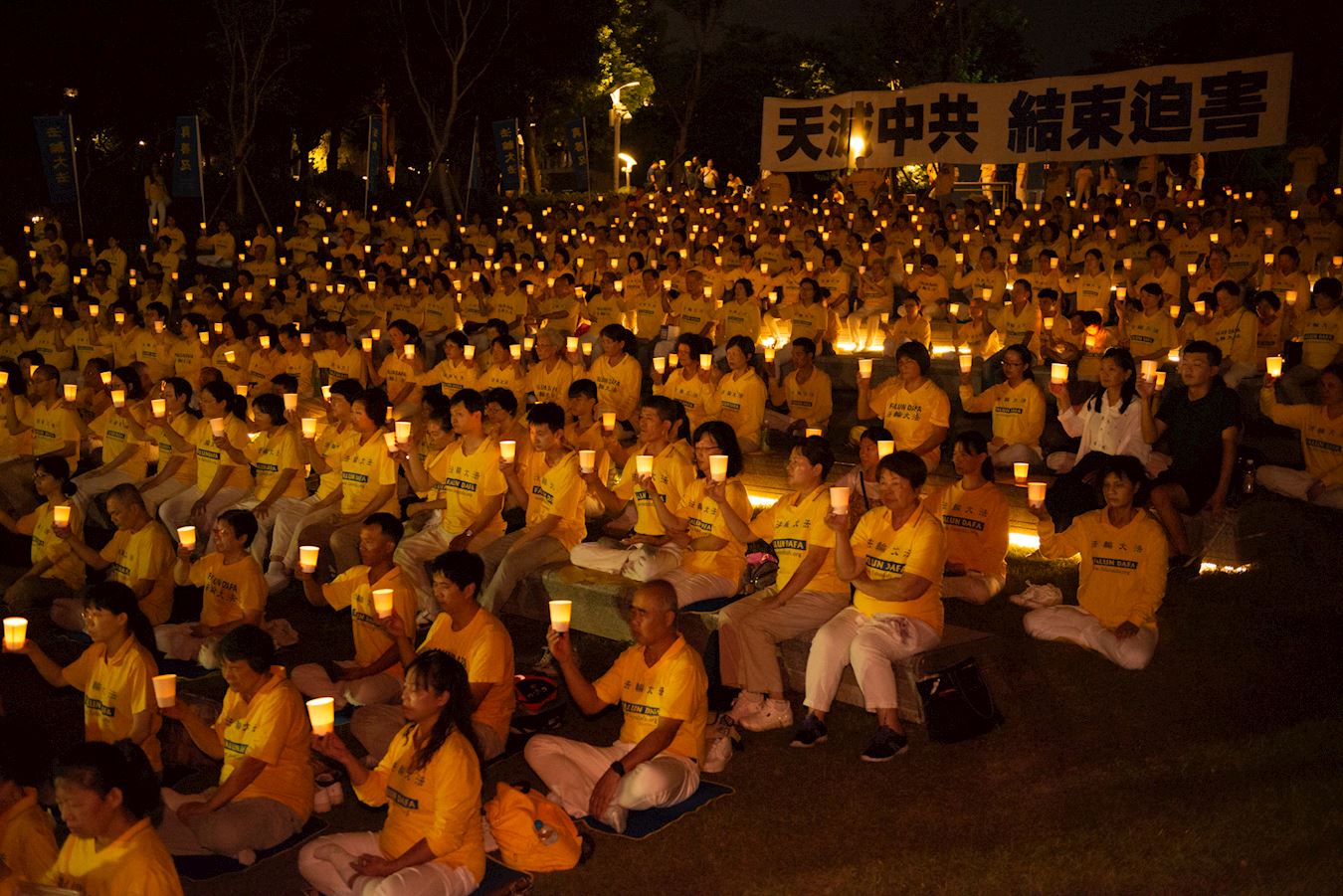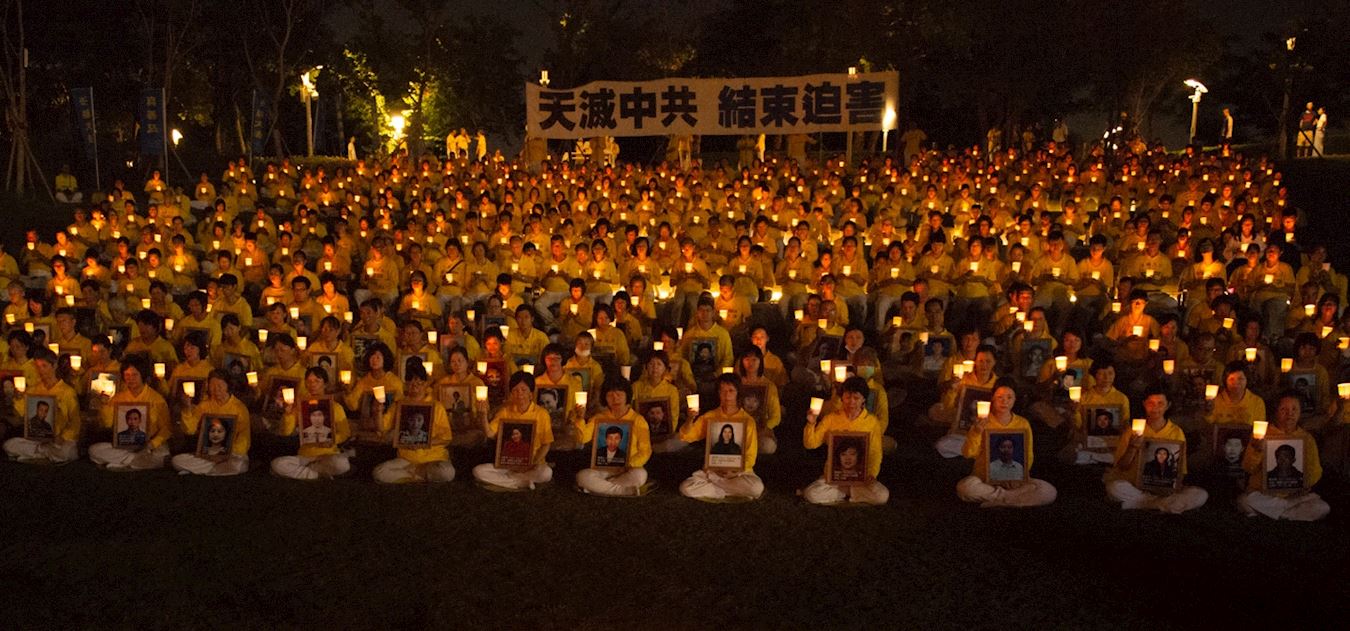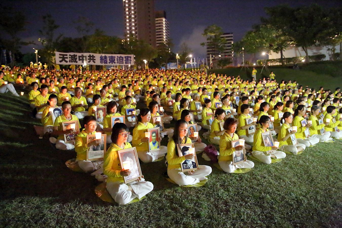 二零二零年七月十九日晚间,来自台湾桃园、新竹、苗栗等地的部份法轮功学员在桃园风禾公园举办“天灭中共,结束迫害”反迫害二十一周年烛光守夜活动。