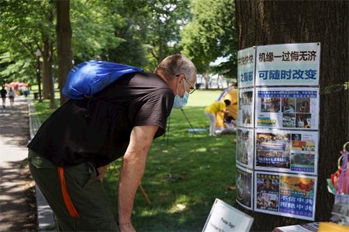 波士顿学员曾麦克表示,二十一年来,波士顿法轮功学员都不畏强权反迫害,每年七月会举办反迫害活动,揭露共产党的邪恶。