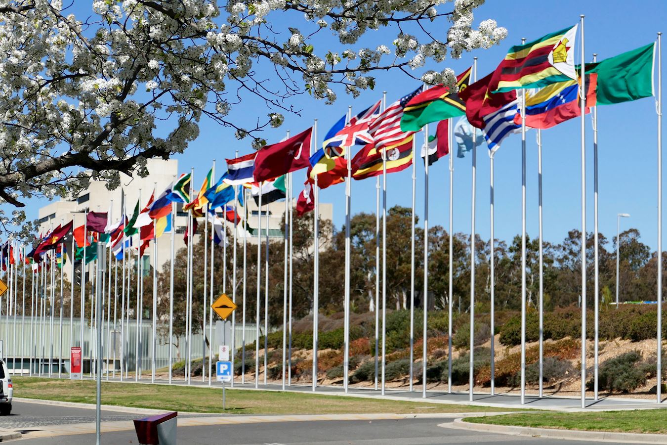 ![]() 图1:法轮功理性和平反迫害21周年到来之际,来自30国逾600名政要共同签署了一份联合声明,旨在声援法轮功团体并呼吁共同制止仍在中国大陆发生且持续了21年的迫害。图为澳洲首都堪培拉格里芬湖(Lake Burley Griffin)南岸的万国旗。 |