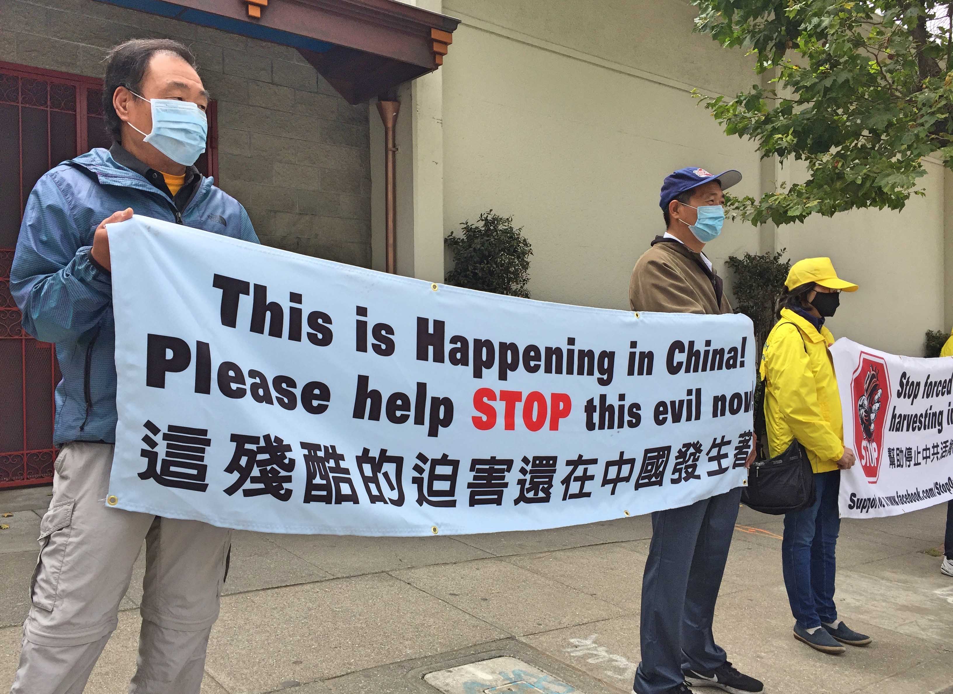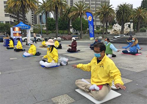![]() 图20:二零二零年七月十七日,旧金山市政厅广场炼功点的学员呼吁制止迫害。 |