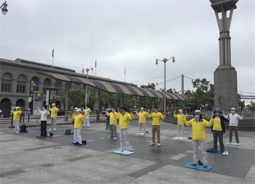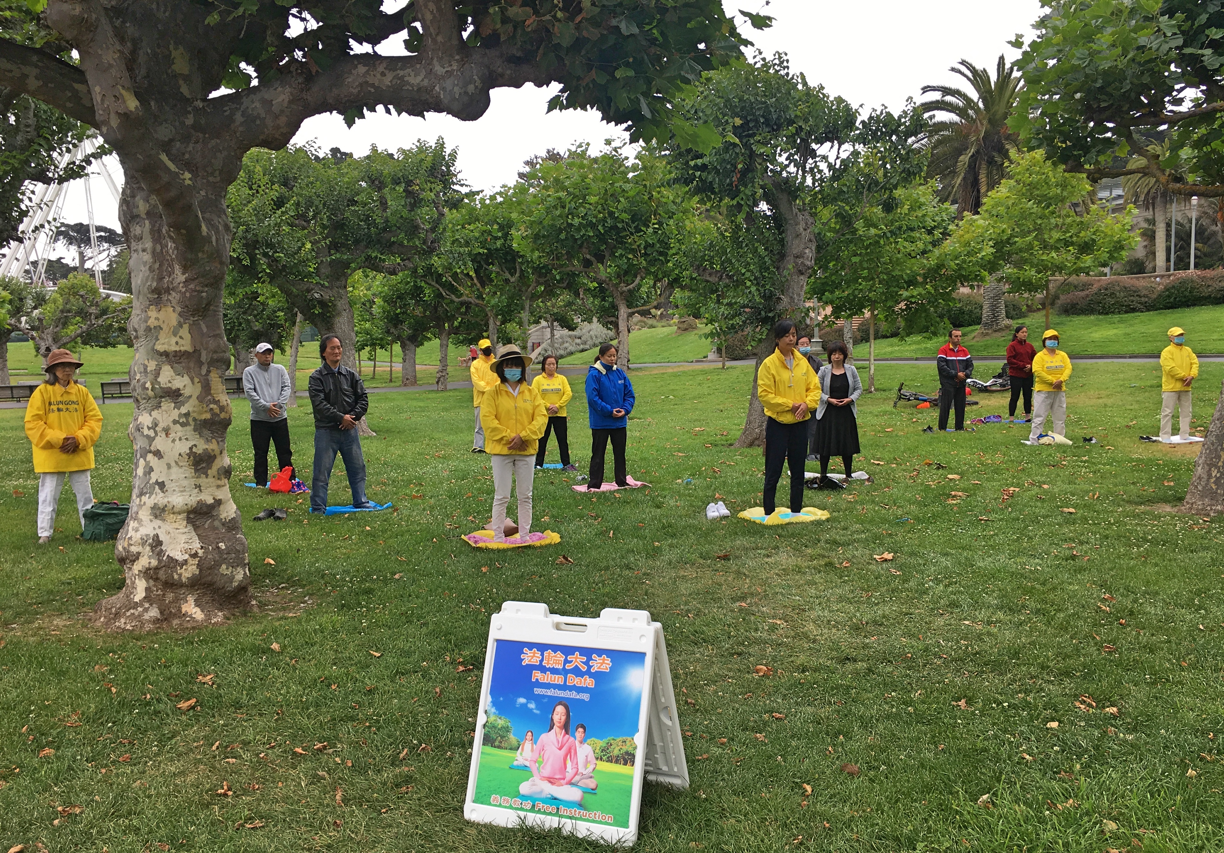 ![]() 图5:二零二零年七月十八日,部分旧金山法轮功学员在金门公园集体炼功,传播法轮功的真相。 |