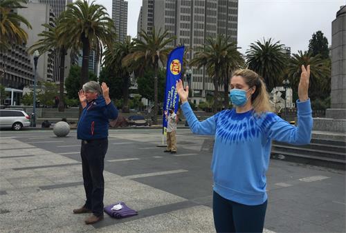 当天有不少人来公园锻炼身体。多位来公园运动的旧金山居民了解真相后,马上表示要学炼法轮功。