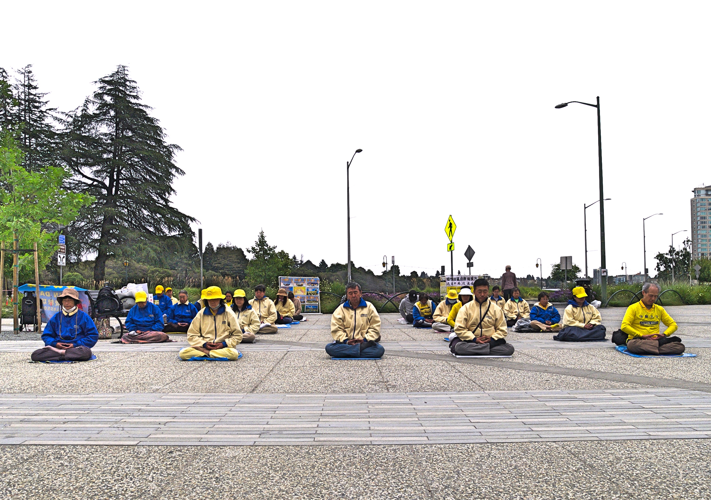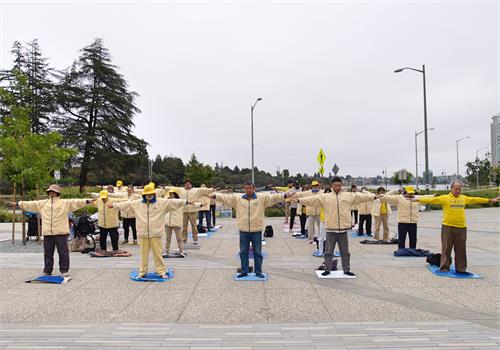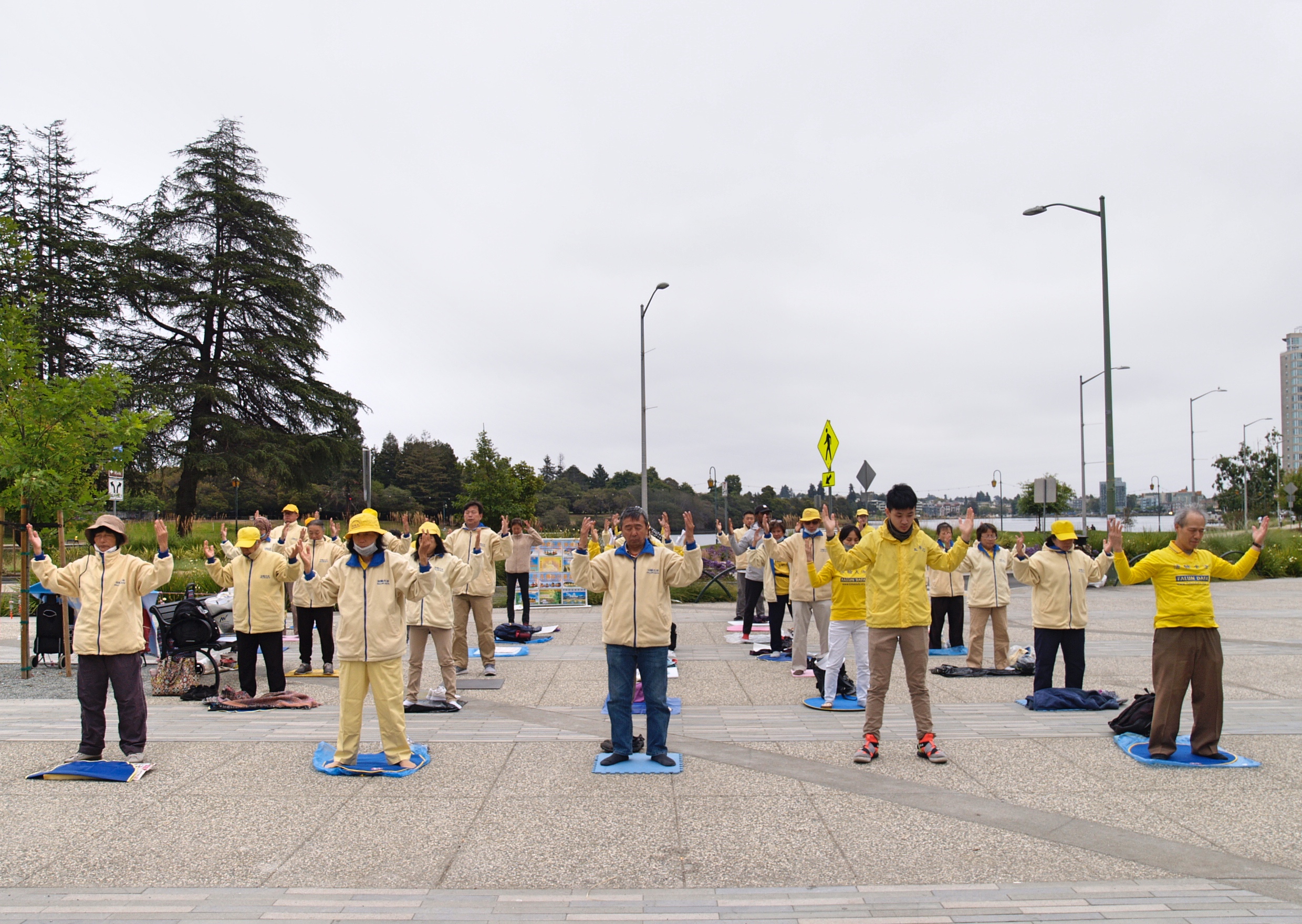 在旧金山东湾,奥克兰法轮功学员于二零二零年七月十九日,旧金山东湾的奥克兰法轮功学员以集体炼功,随后到奥克兰中国城设立图片展,纪念反迫害二十一周年,传播法轮功真相。