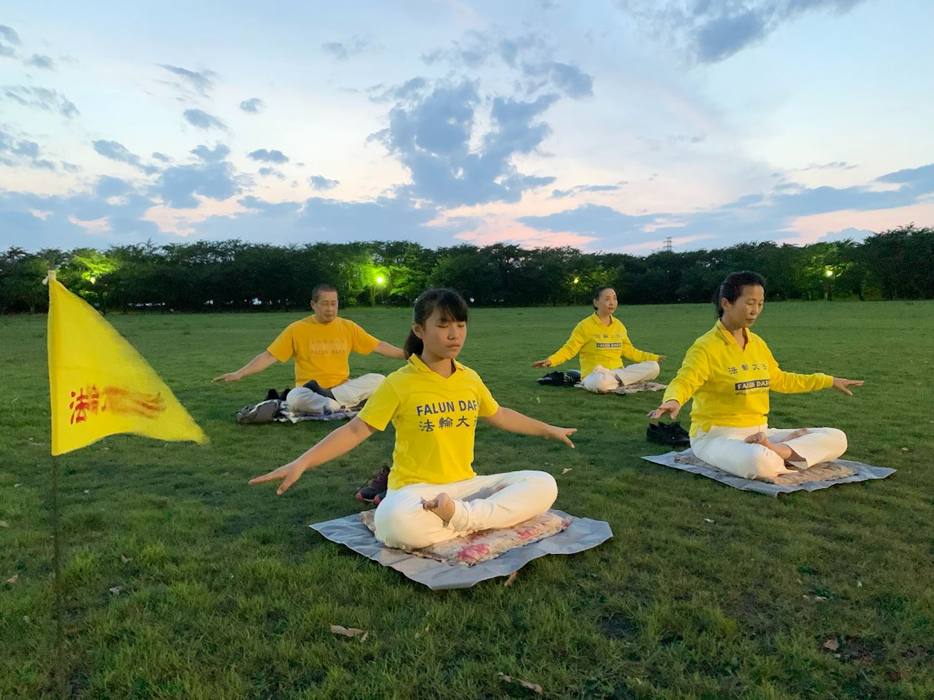 ![]() 图3:日本熊谷炼功点学员在集体炼功 |