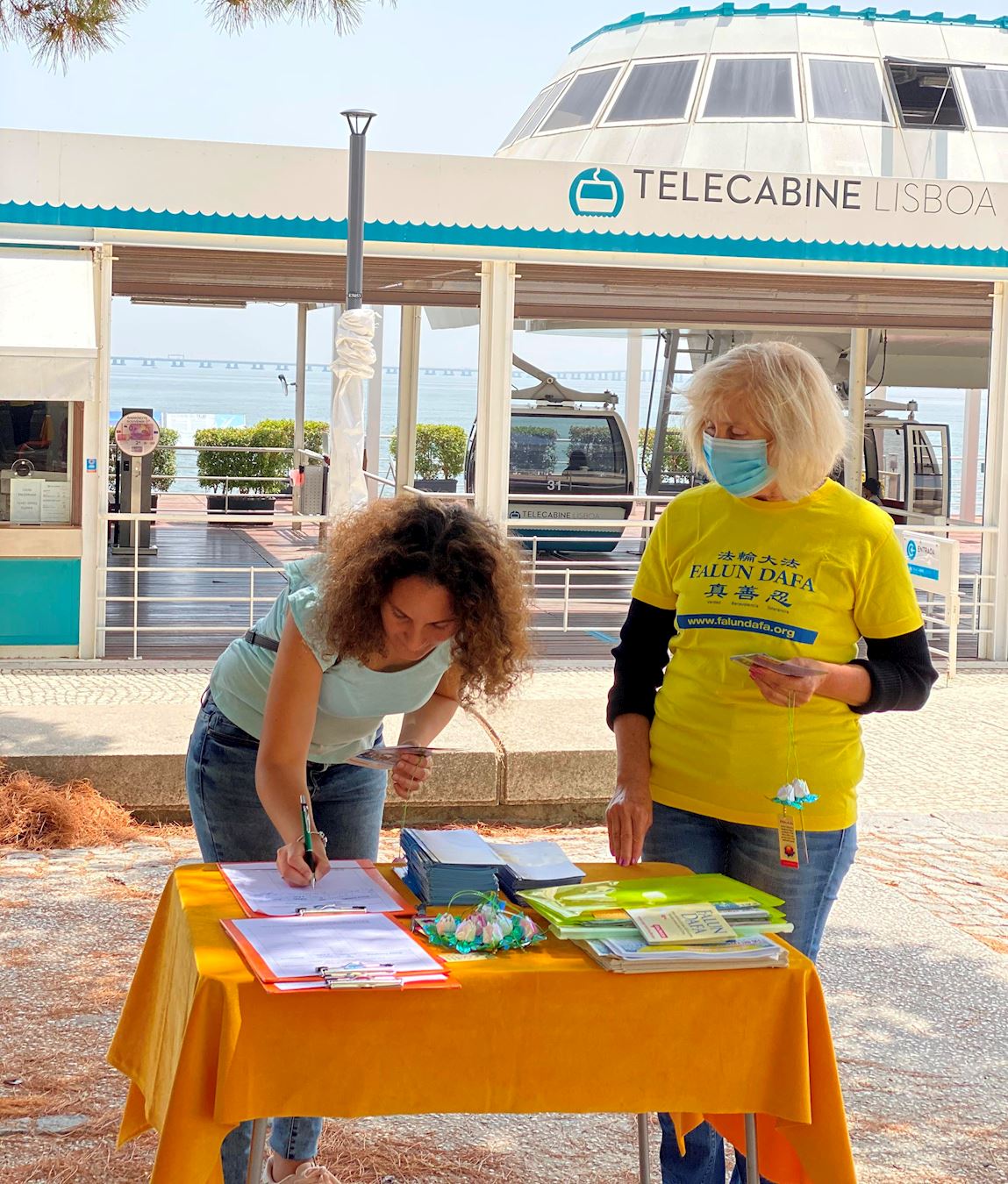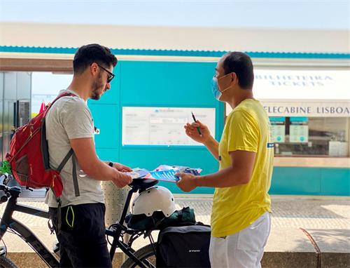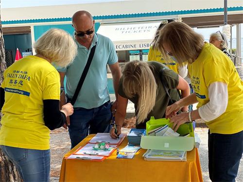 ![]() 图5~6:里斯本民众签名支持法轮功反迫害。 |