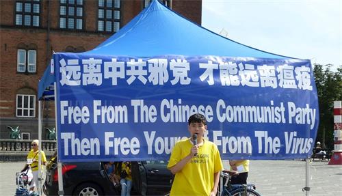 “所以今天我要求丹麦政府,请他们从迷雾中清醒过来。现在,丹麦政府和很多丹麦政客,他们不想站出来反对中共。因为这会让他们损失金钱,也会让丹麦损失金钱。但是我相信,自由的代价和人性的代价,永远比销售给中共更多的猪肉更重要!所以,今天我想请丹麦首相梅特·弗雷德里克森(Mette Frederiksen)和外长杰普·科弗德(Jeppe Kofod)明确告诉中共,我们不支持他们对待法轮功学员、对待中国其他民族、对待中国公民的方式。他们必须履行对人民的承诺,给他们自由,给他们人权。谢谢大家!”