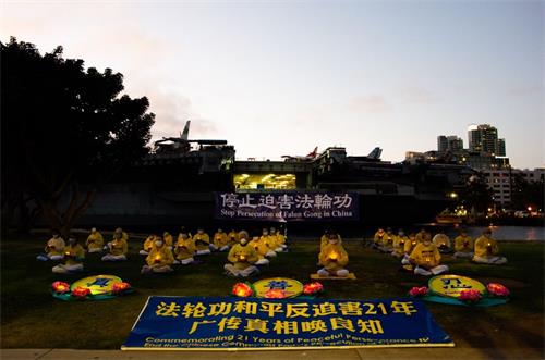 ![]() 图1~3:二零二零年七月十八日,圣地亚哥学员举办烛光夜悼,纪念反迫害二十一周年,同时传播法轮功的真相。 |
