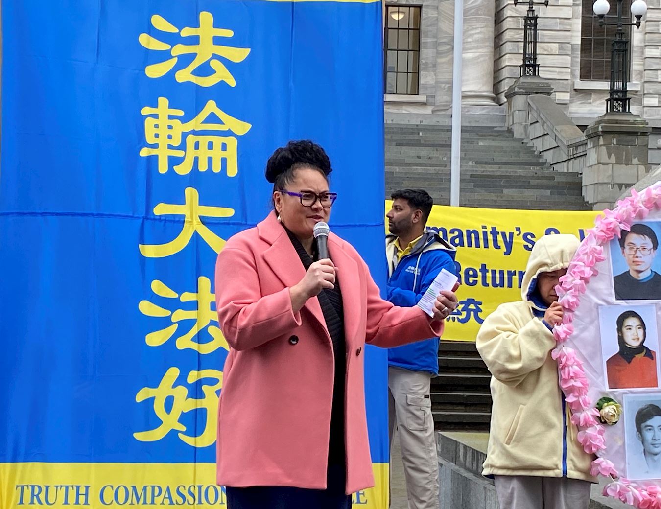 工党国会议员路易莎·哈瑞茹阿(Louisa Hareruia)也在集会上发表了讲话。她说:我们都有作为人的权利。这些权利包括表达的自由和宗教的自由。所以法轮功学员所经历的系统的虐待,无论从人权的角度还是从民主的角度来看,那都是错误的。