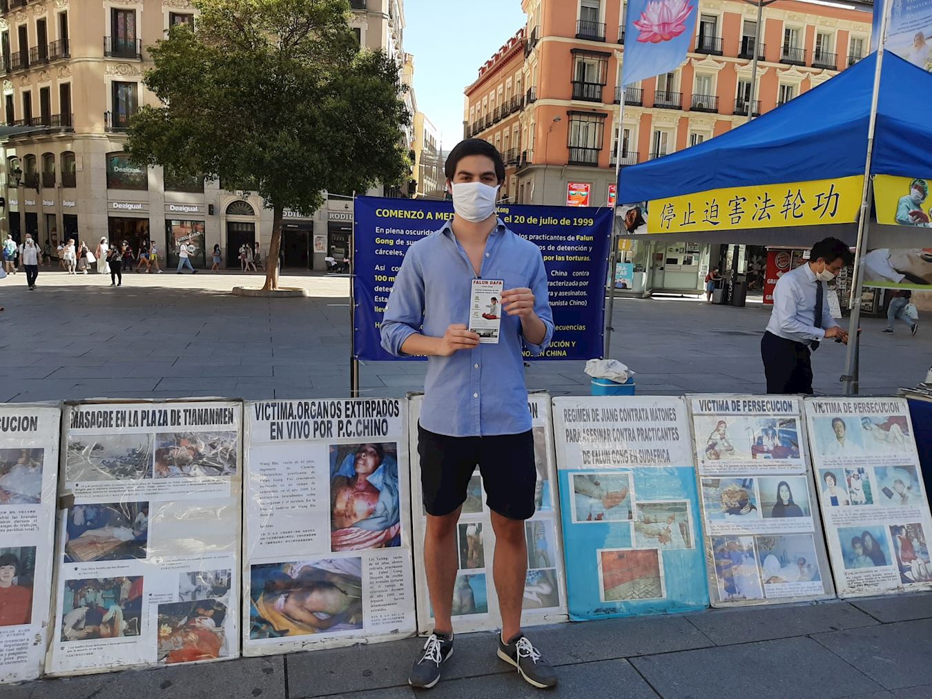 一位叫胡安的小伙子对法轮功学员说,他不知道中共独裁政权对法轮大法的迫害,从未在媒体上听到谈论过这个可怕的问题。听到许多调查表明,在中国正在发生酷刑,性虐待,强摘器官等暴行,他感到难过。他表示,不难想象中国人生活在如此恐怖之中,因为他来自南美,他的国家也遭受共产独裁的涂炭。他在请愿书上签名,并接受了真相资料。他鼓励学员说:“加油”,并希望法轮功学员的诉求能够很快被听到。