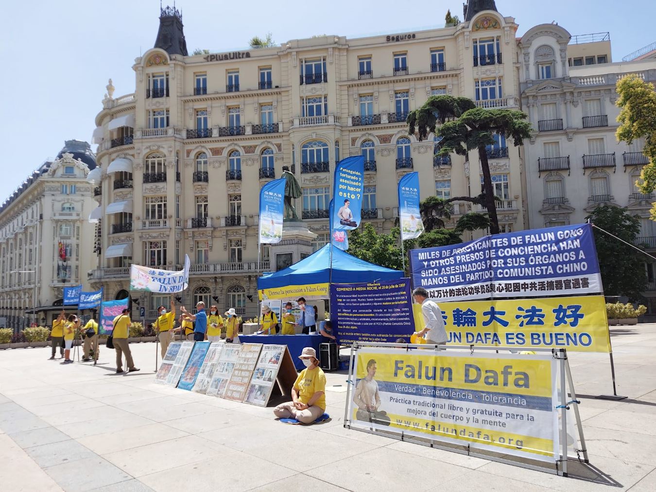 七月二十日中午,部份西班牙法轮功学员来到西班牙国会大厦前,向议员们讲述法轮功受迫害真相,呼吁帮助制止中共对法轮功的迫害。
