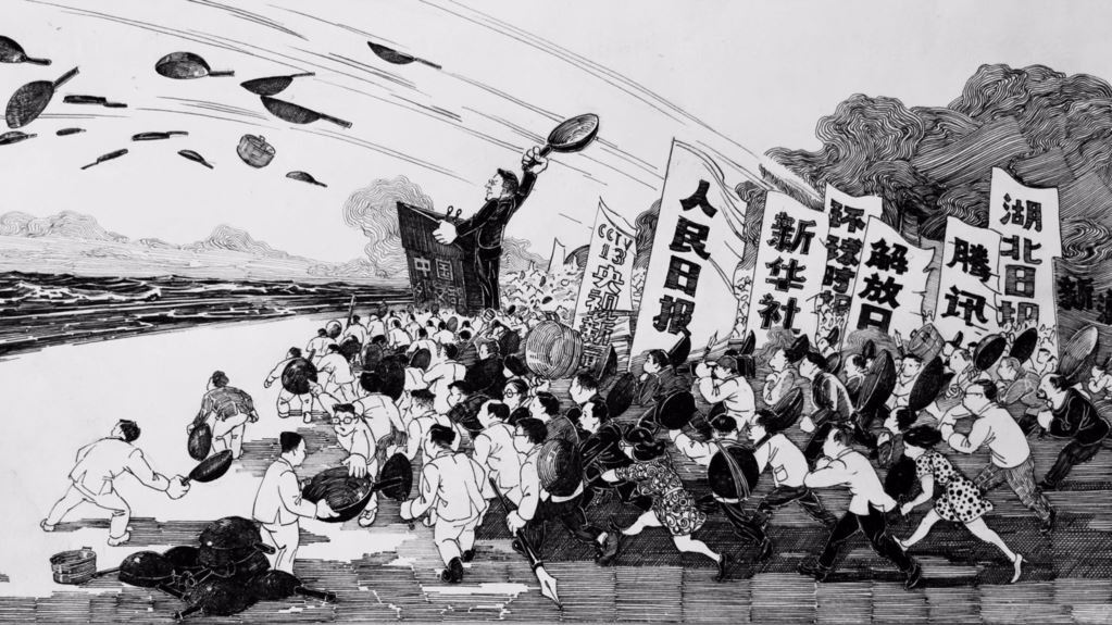 ![]() 图3:北京知名画家大车创作的漫画《甩锅》,讽刺中共掩盖疫情真相嫁祸海外(大车遭北京公安带走训诫)。 |