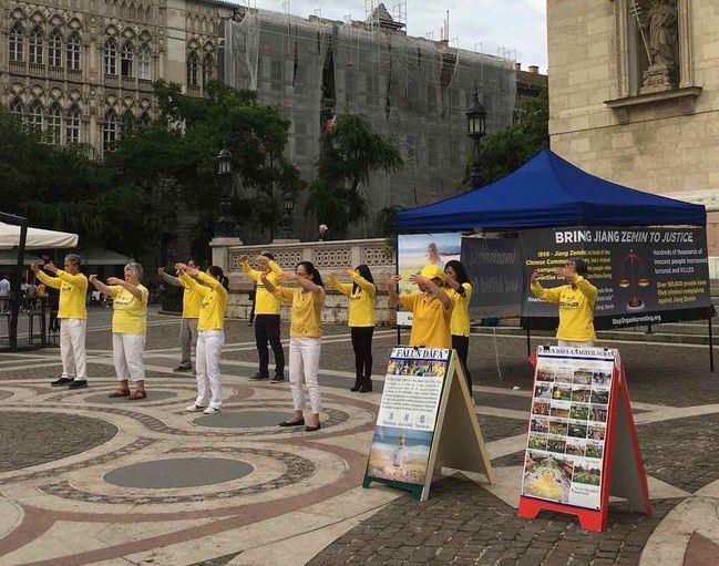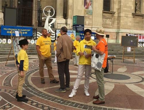 ![]() 图1:法轮功学员在布达佩斯的圣安德斯万广场举办讲真相活动。 |