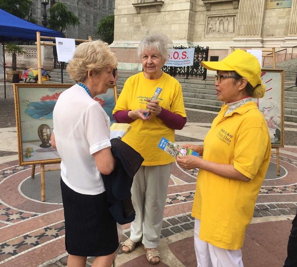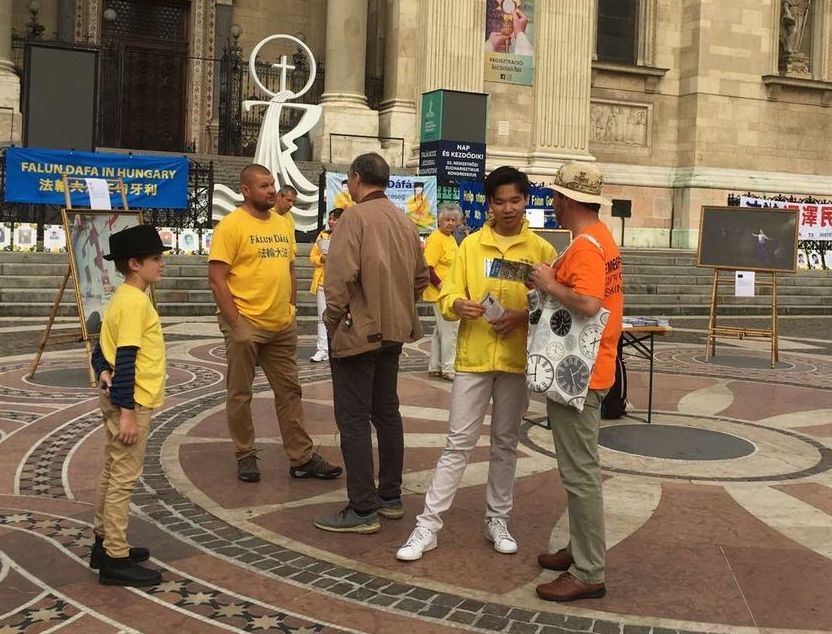 一个叫本斯(Bence)的男孩说:“我很幸运能遇到这样的活动。因为我很少来布达佩斯”。他对炼功非常感兴趣,说自己好象经常坐在莲花座上。他说:“迫害是不可接受的。我很高兴签请愿书,非常赞成你们的做法,会给所有善良的人们带来好运的。”