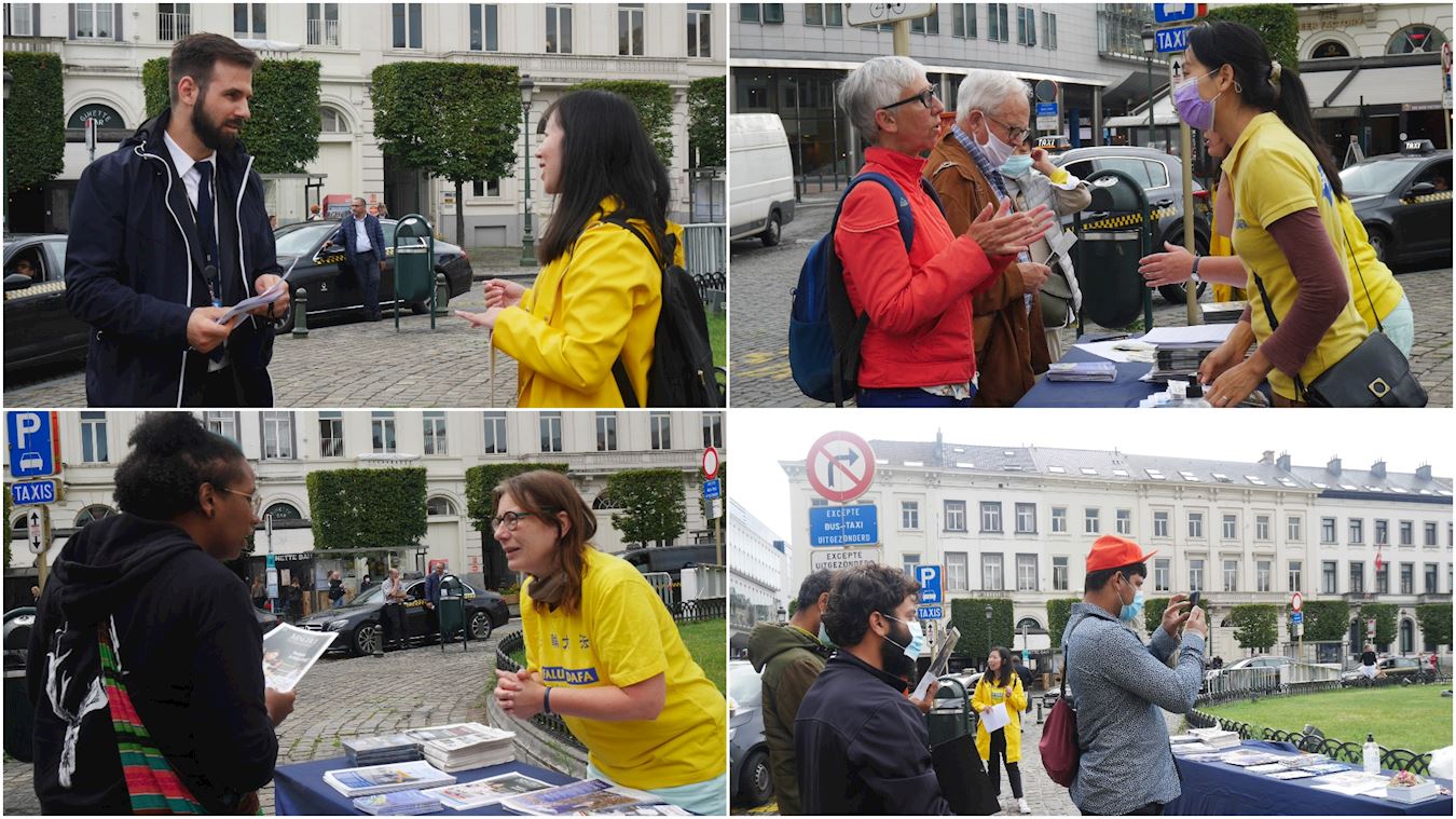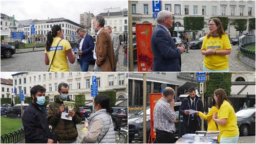 活动中,比利时法轮大法学会负责人尼克(Nico)介绍说:“我们今天安排了两个活动,上午在欧洲布鲁塞尔议会前,下午在中共使馆前。”他继续说:“二十一年来,我们持续向比利时政府各级官员、欧洲议会议员和广大的民众讲清真相,讲述着法轮大法、真善忍的美好;揭露中共的迫害事实,让广大的世人了解了中共的邪恶本质。今年六月十二日比利时联邦参议院通过162决议案,谴责中共活摘法轮功学员及少数族裔民众器官的罪行。看到那个结果时,我既惊讶又高兴,由于全世界法轮功学员的共同努力,无论中共高筑防火墙,还是海外渗透,它们的罪恶行径,特别是活摘法轮功学员器官牟利的罪行,还是曝光在中国和世界民众面前。”
