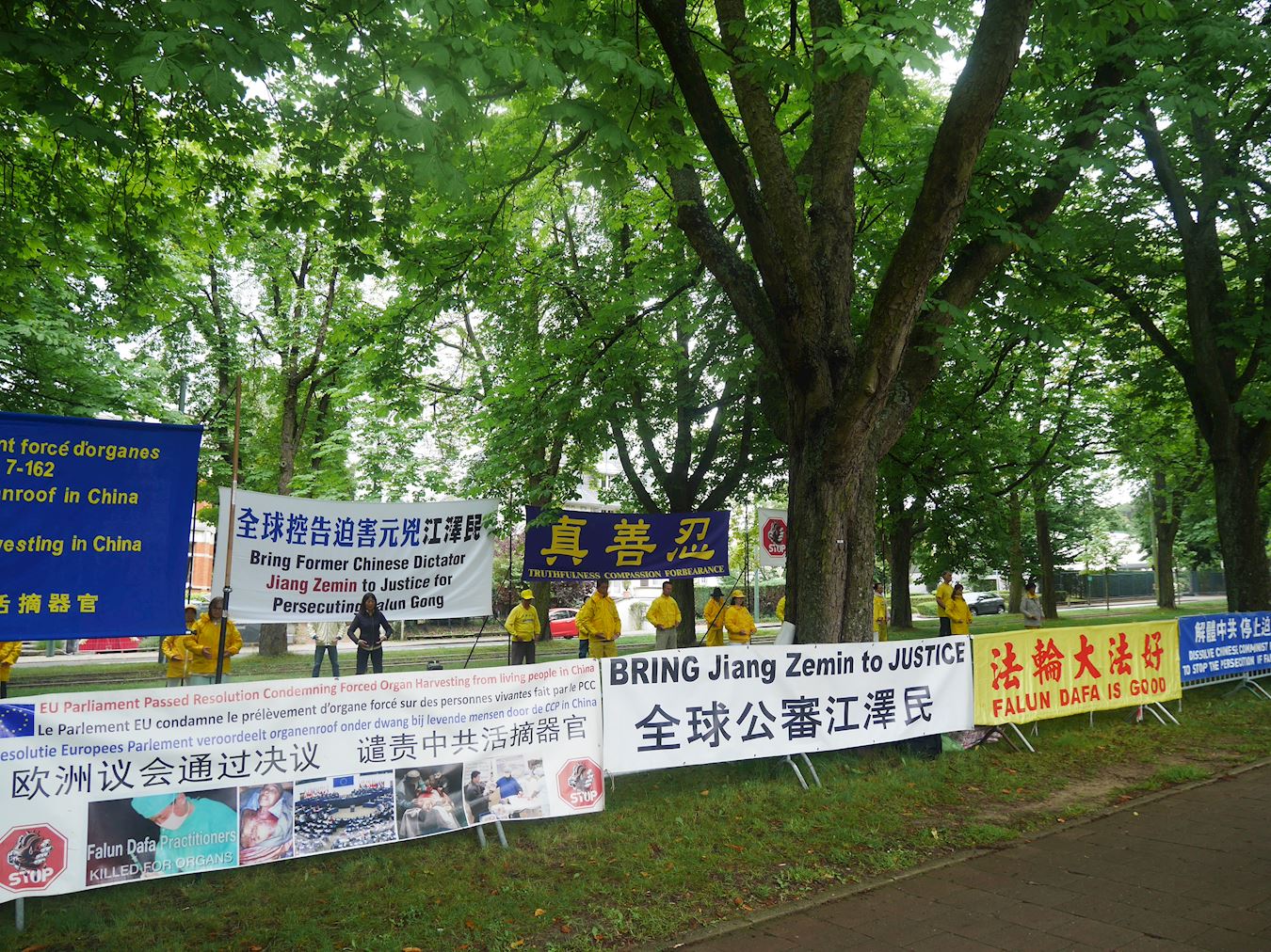 下午,法轮功学员来到中使馆前,抗议中共的迫害。