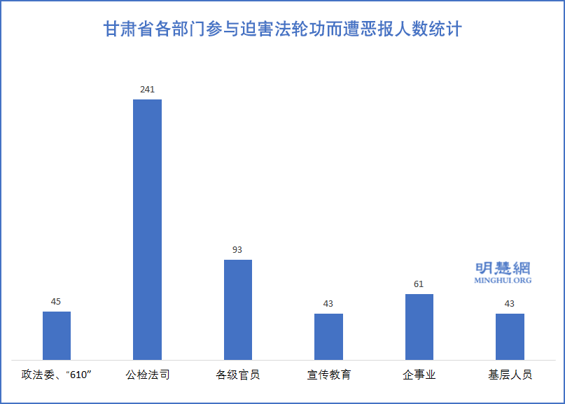![]() 图2:甘肃省各部门参与迫害法轮功而遭恶报人数统计 |