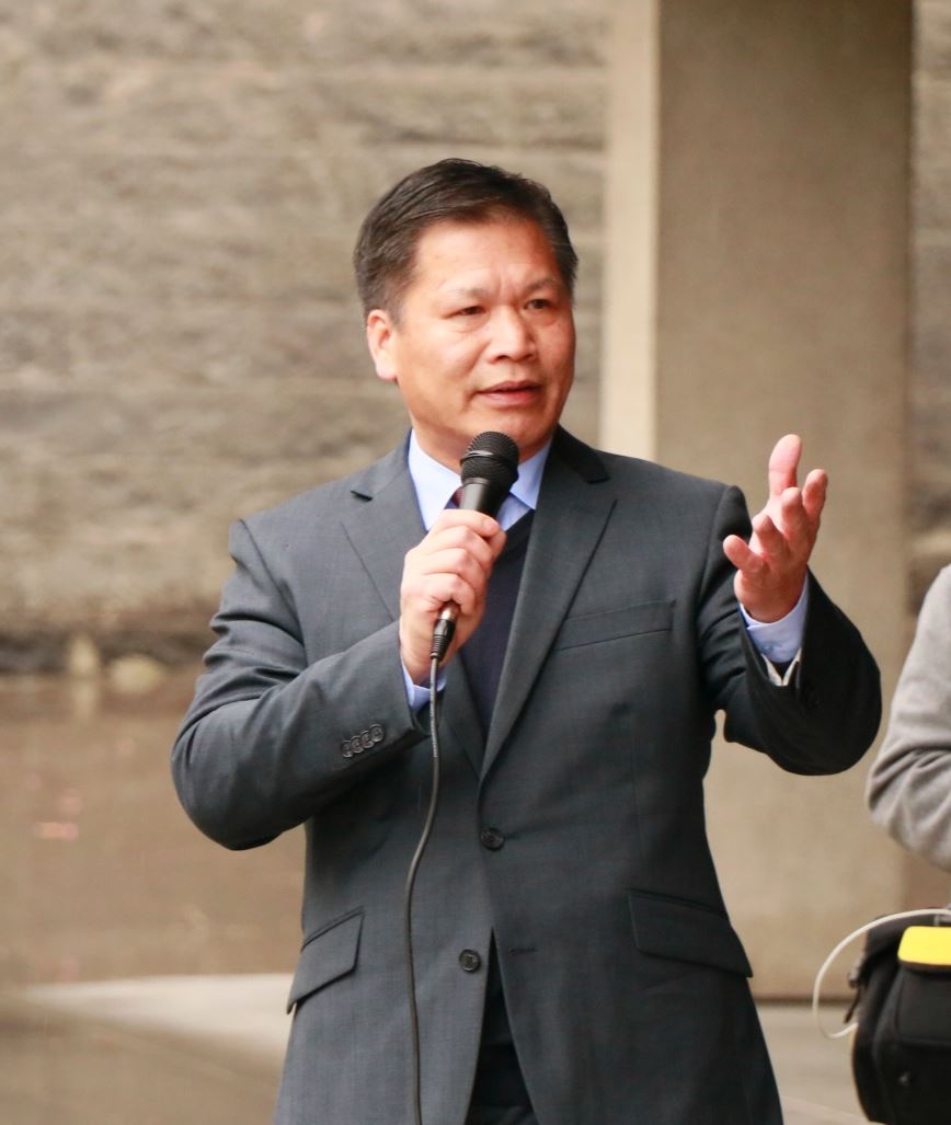 ![]() 图4:澳洲越南社区协会主席阮本(Bon Nguyen)先生于二零一九年七月二十日,在墨尔本市中心举行的主题为“解体中共、结束迫害”的集会上发言。 |