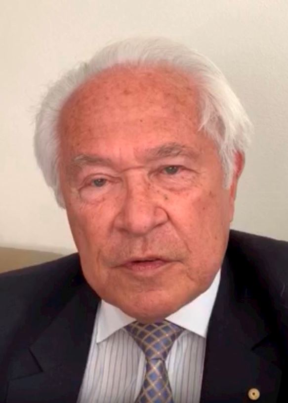 ![]() 图6:澳洲勋章获得者、资深法学家、悉尼科技大学名誉教授大卫・弗林特(Prof David Flint AM)先生在网络集会上发言。 |