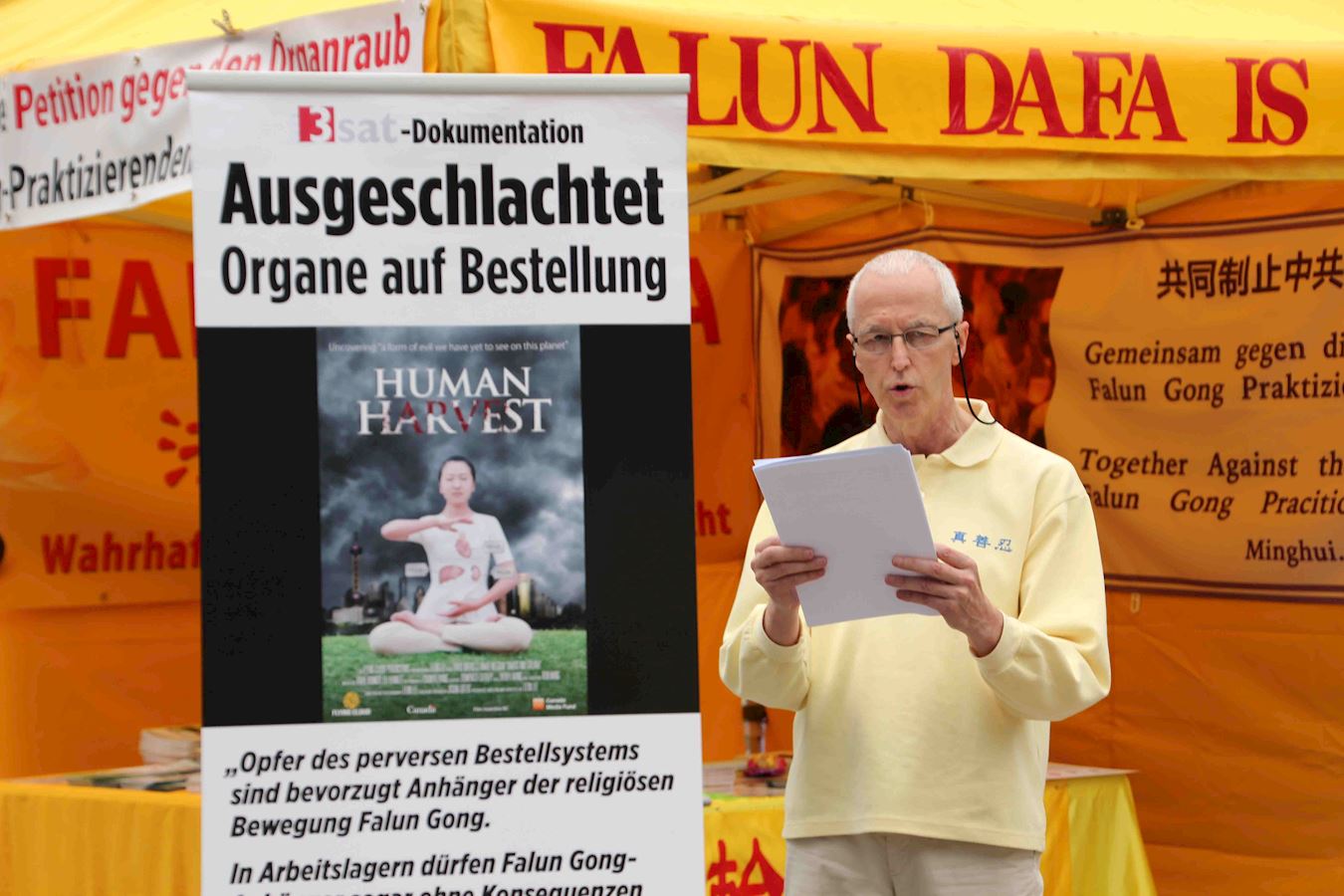 在医院担任社会工作者的托布勒先生(Stefan Tobler)在签名后谈到在瑞士因为捐献器官者有限,有很长的等待期。但是不时的会有人从等待名单中消失:“很有可能是因为他们在黑市上买到了器官,在什么地方通过秘密的渠道得到了相关的器官。”在看到展出的关于制止中共活摘器官的展板后,他和儿子一起来了解更多的讯息。
