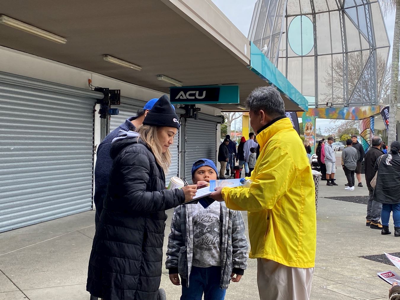 齐·普克伊努(Joe Pokoina)在奥克兰市政府工作,他说:“我之所以停下脚步,在征签表上签名,是因为你们做得很棒,我知道在中国有许多腐败现象。我也经常看新闻,深深感到能生活在新西兰这个国家很幸运。相比之下,如果是生活在中国或者香港那一定会非常艰难。现在你们在这里所做的都是积极正面的,我能看到和感受到你们每个人的状态都很好。精神领域的东西就是把如何修好自己和身心健康结合在了一起,这是一种与宇宙的联系。”
