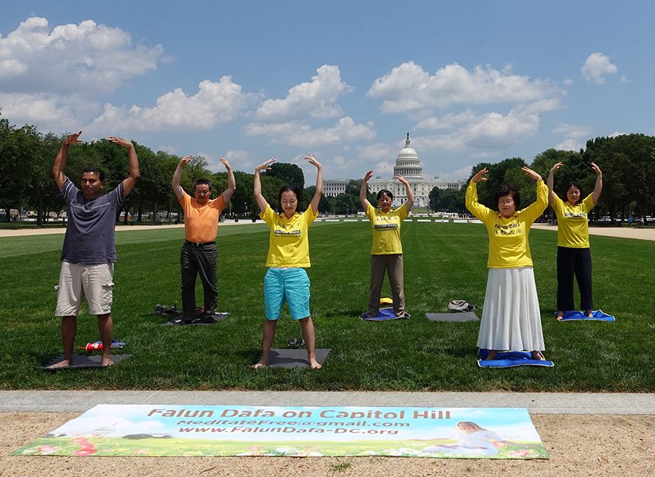 今年受中共病毒疫情影响,华盛顿特区取消了传统的独立日游行。不过,当天上午,有多位法轮功学员来到美国国家广场集体炼功,向过往的民众传播法轮功的美好和真相。