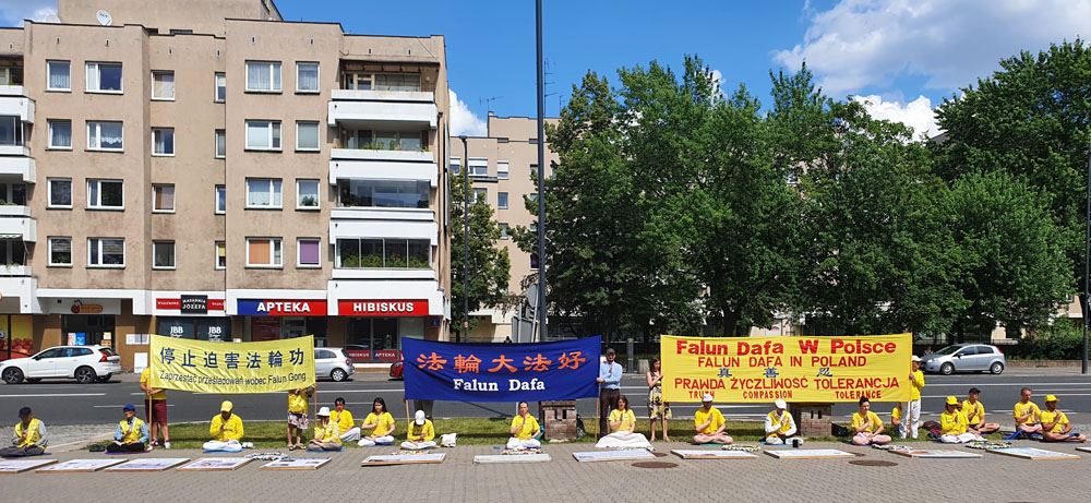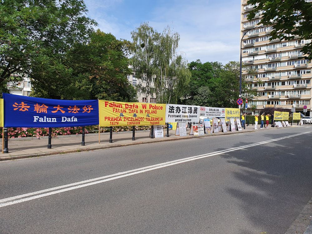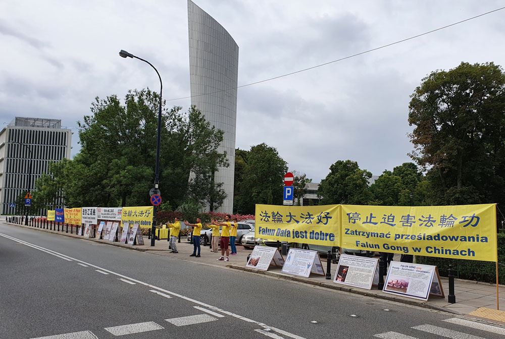 2020年7月19日至26日,波兰法轮功学员在华沙中使馆前、波兰议会楼前、华沙古城及海滨城市格但斯克中领馆前、格但斯克著名长广场上连续举办活动,抗议中共对法轮功二十一年迫害,呼吁解体中共,停止迫害法轮功。