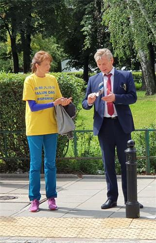 ![]() 图9:Regina Siejkowska女士与法轮功学员交谈 |